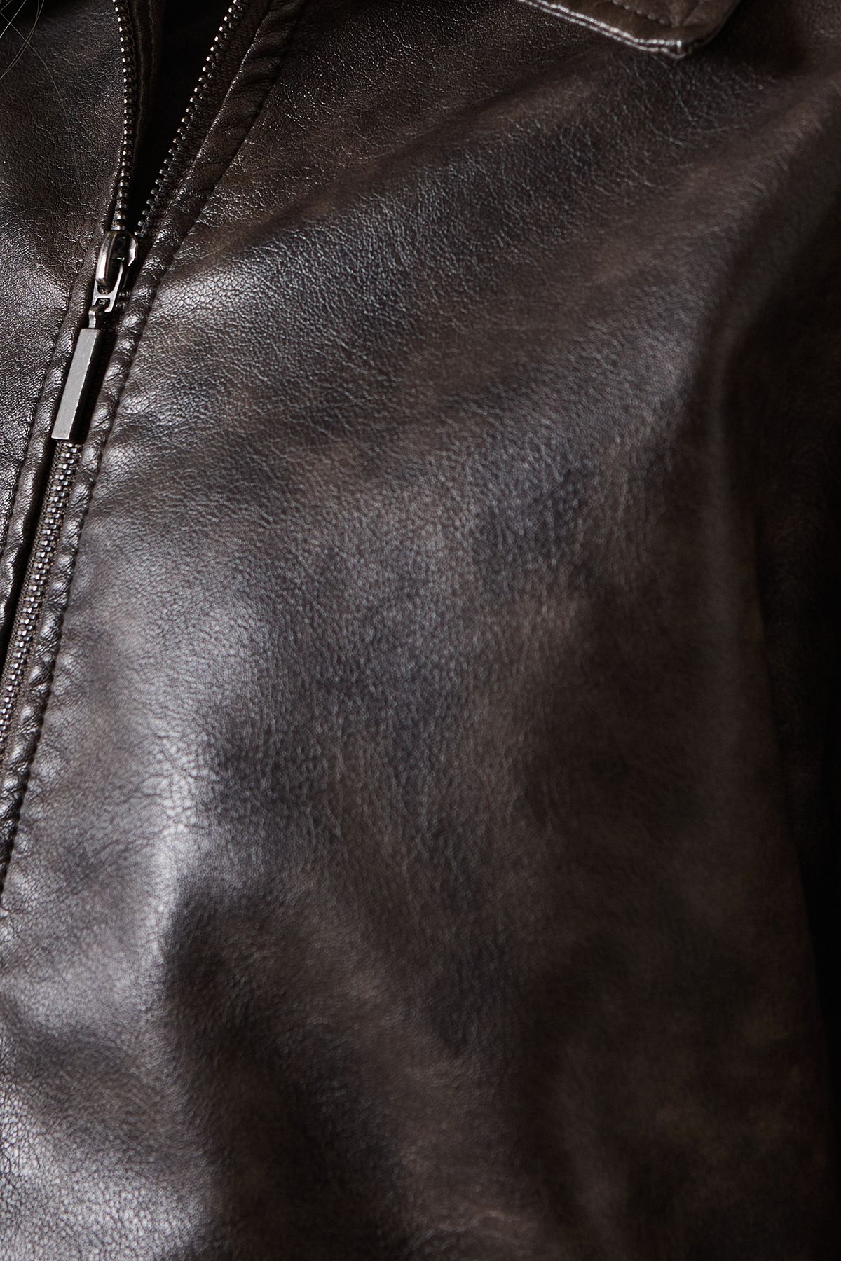 Whipstitch Faux Leather Zip Through Jacket