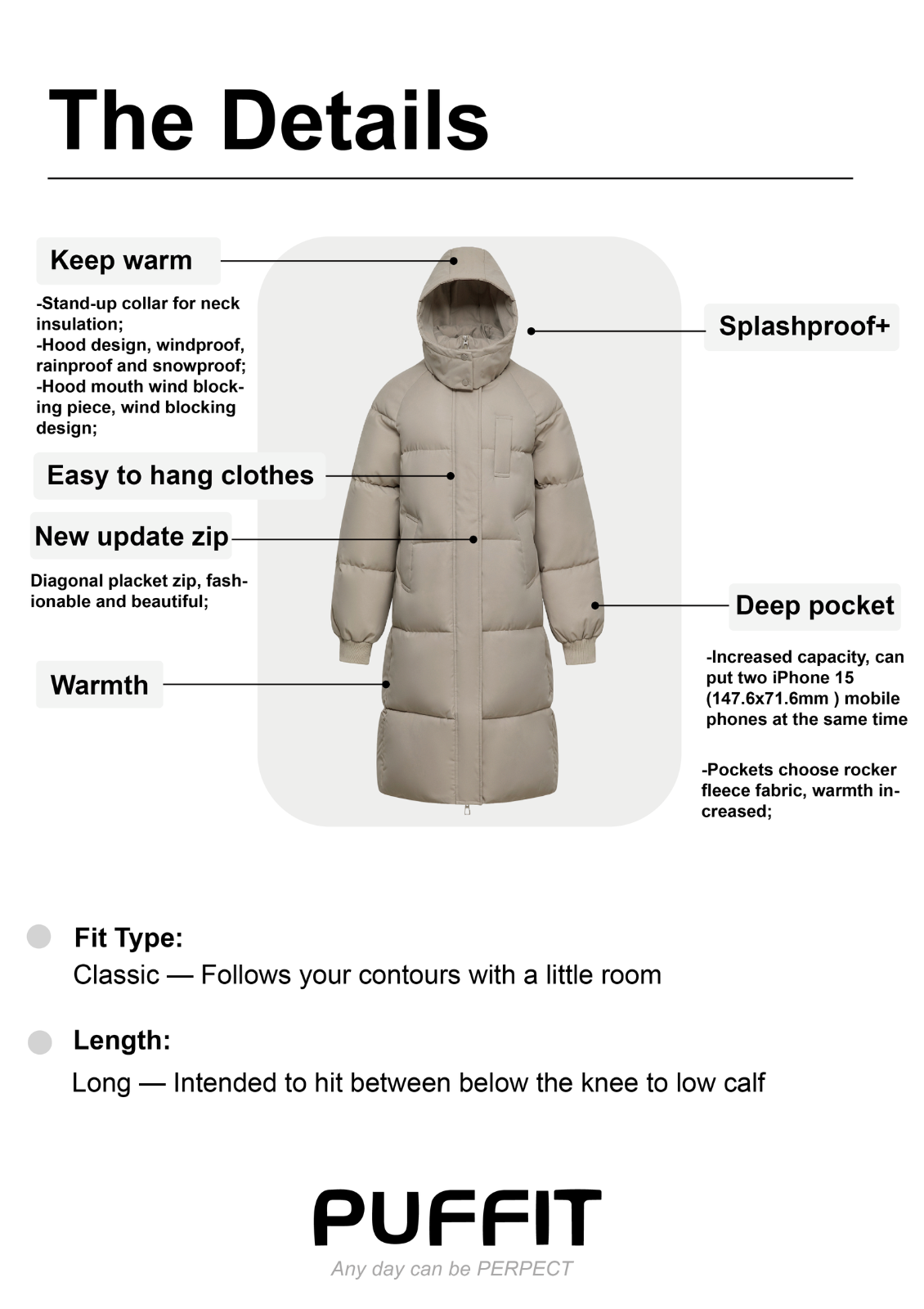 4)Warm cuff sleeve design