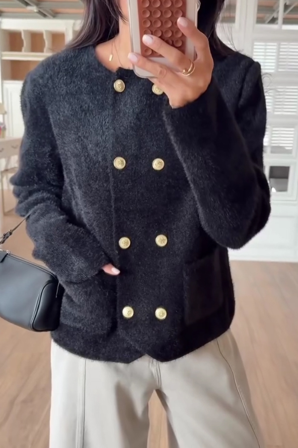 Women Elegant Plush Double-Breasted Jacket
