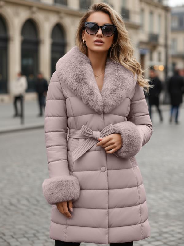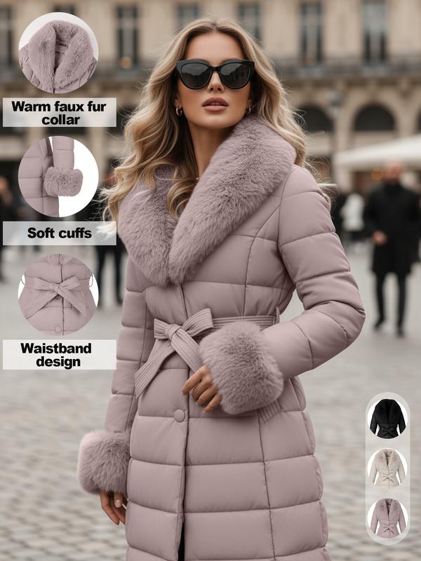 【Warmth Assurance】: Crafted with high-quality cotton, this outerwear ensures warmth during chilly fall and winter months.【Chic Faux Fur】: Features a sophisticated faux fur collar, adding a touch of refinement to everyday casual looks.【Practical Waist Belt】: Includes a removable waist belt, allowing you to customize the fit and silhouette to your preference.【Outdoor Ready】: Engineered for outdoor activities, providing functionality while maintaining a modern and relaxed appearance.【Seasonal Wear】: Tailored for fall and winter seasons, ensuring you stay fashionable and warm throughout the colder months.