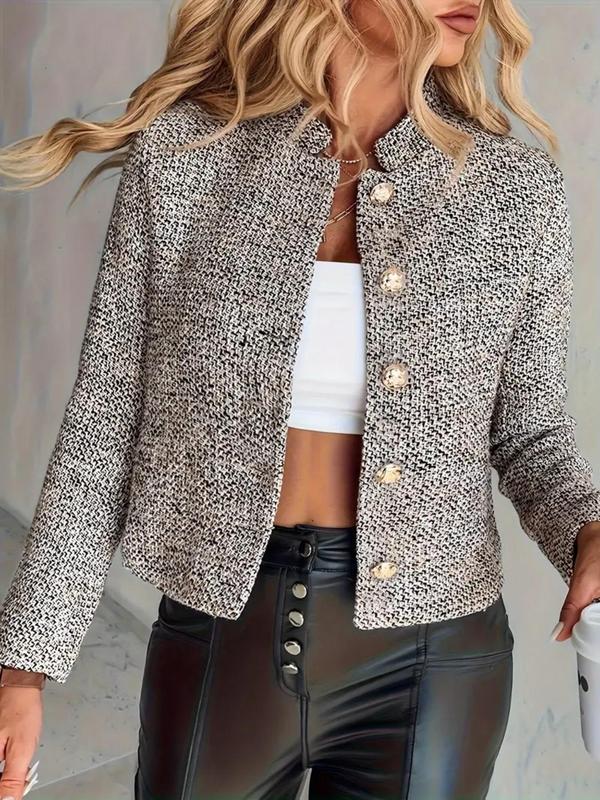 Women's Solid Button Front Coat, Casual Long Sleeve Outerwear for Fall & Winter, Ladies Clothes for Work Office Business, Casual Fashionable Jacket, Womenswear