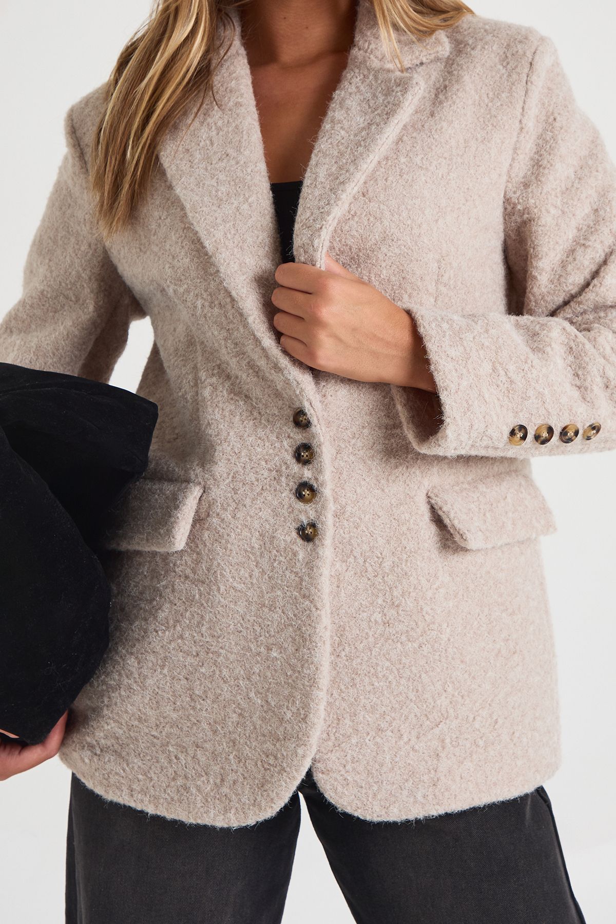 • Functional front pockets provide practical storage whilst maintaining the blazer's clean lines Make a statement with this wool-look fluffy blazer jacket that combines comfort with effortless style. The oversized fit creates a relaxed silhouette that's perfect for layering over your favourite basics. As seen on our model, pair with a simple black top and wide-leg trousers for an easy yet put-together look that works for family gatherings or casual coffee dates. The textured fabric adds dimension and interest, whilst the classic blazer structure keeps the piece feeling polished despite its casual nature. This Boohoo jacket transitions seamlessly from day to night - throw over jeans and trainers for weekend shopping trips or style with a midi skirt and ankle boots for dinner with friends. A versatile addition to your wardrobe that works across multiple seasons.