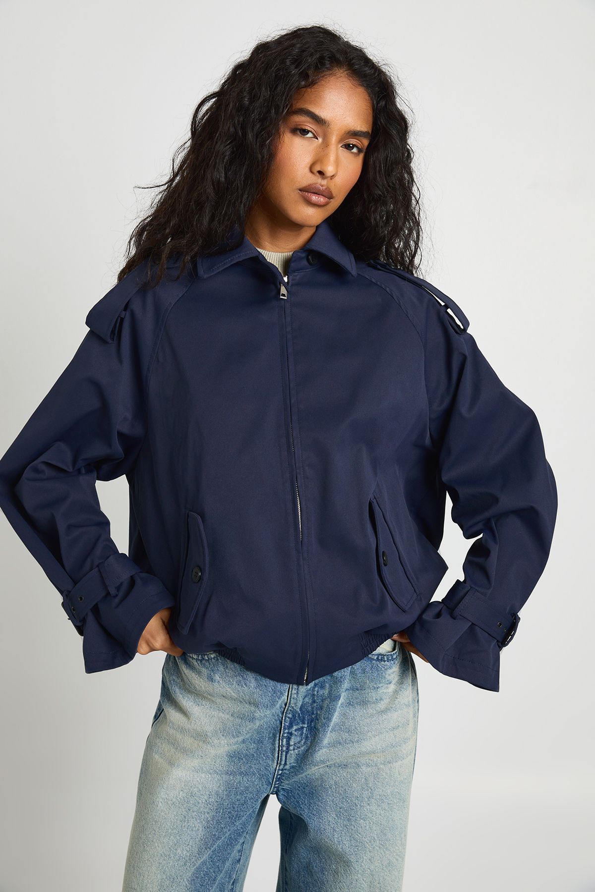 • Versatile cropped length ideal for showcasing high-waisted bottoms This Zip Up Trench Jacket redefines casual outerwear with its contemporary silhouette and practical design. The relaxed fit creates an effortlessly cool aesthetic while maintaining a structured look that works across seasons. Style with wide-leg jeans and a neutral fitted top for an on-trend daytime ensemble, or pair with tailored trousers and boots for an evening out. The jacket's cropped length perfectly complements high-waisted bottoms, creating a balanced silhouette. For family gatherings or weekend brunches, layer over a lightweight jumper with your favourite denim and trainers. Complete the look with a crossbody bag for a touch of urban sophistication. This versatile piece transitions seamlessly from casual coffee dates to evening social events, making it an essential addition to your Boohoo wardrobe.
