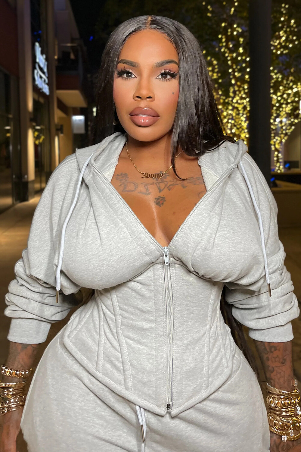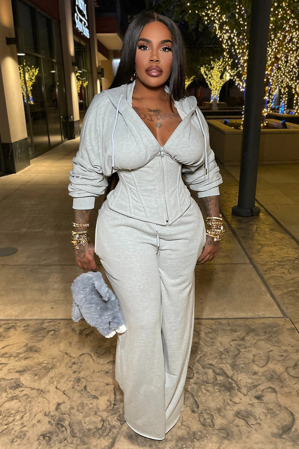 Zipper Cinch Waist Hooded Track Jacket Pants Matching Set-Grey [Pre Order]