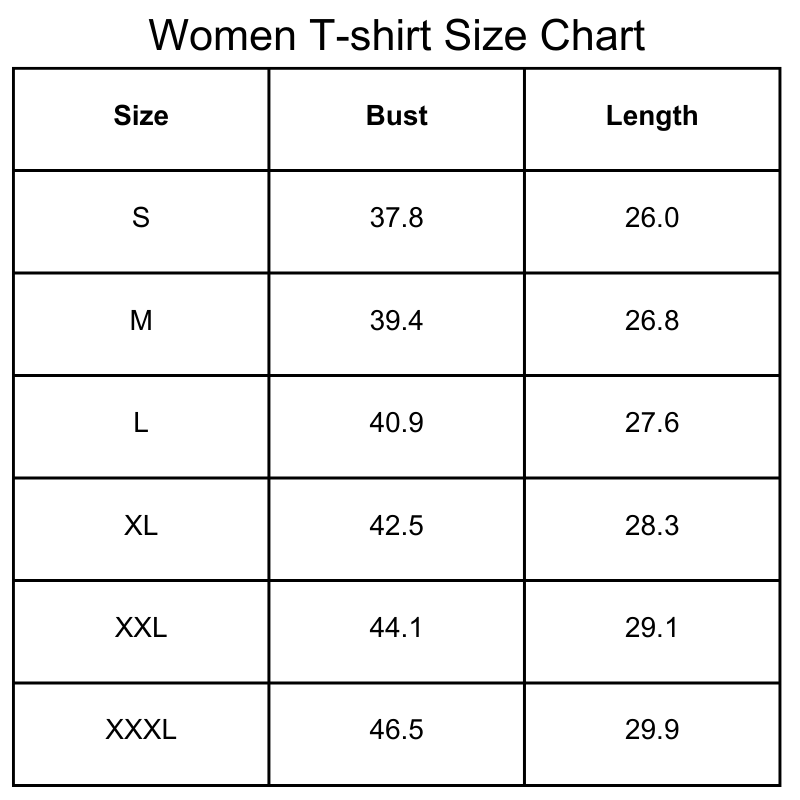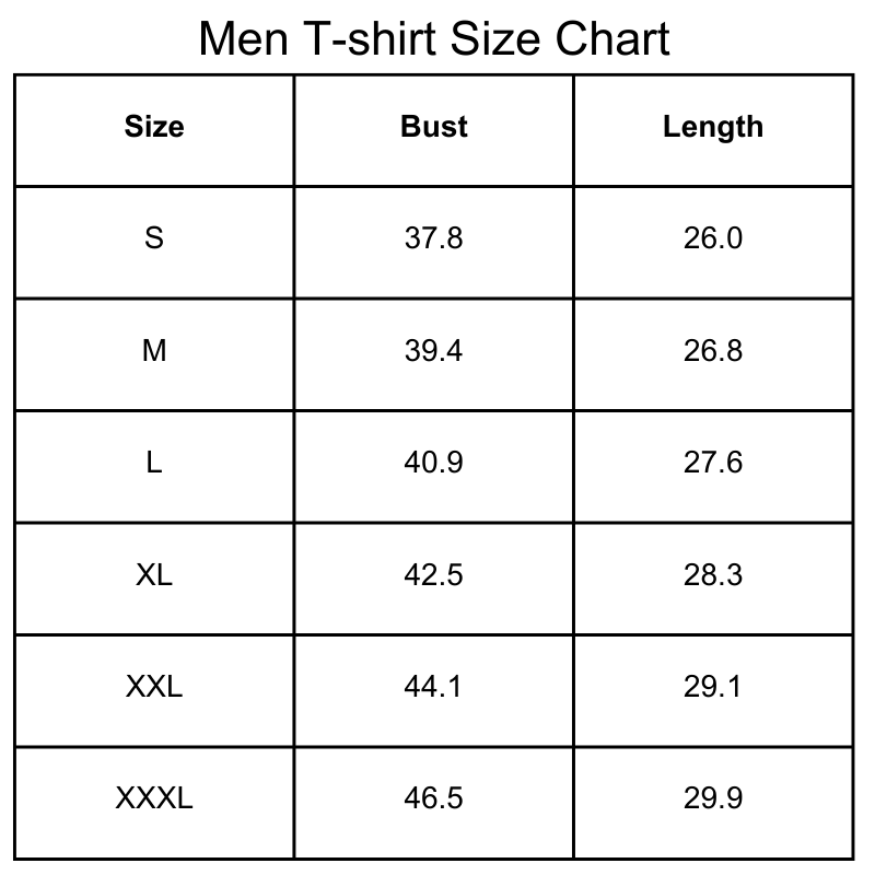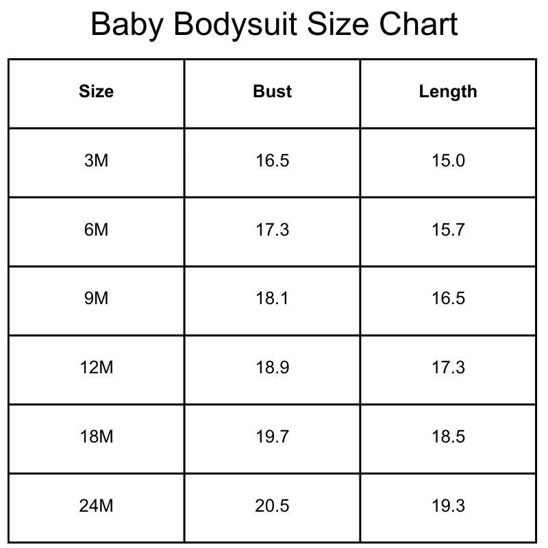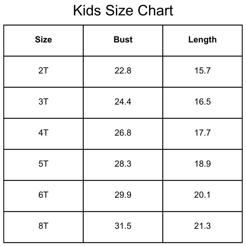 Size Chart (inches):