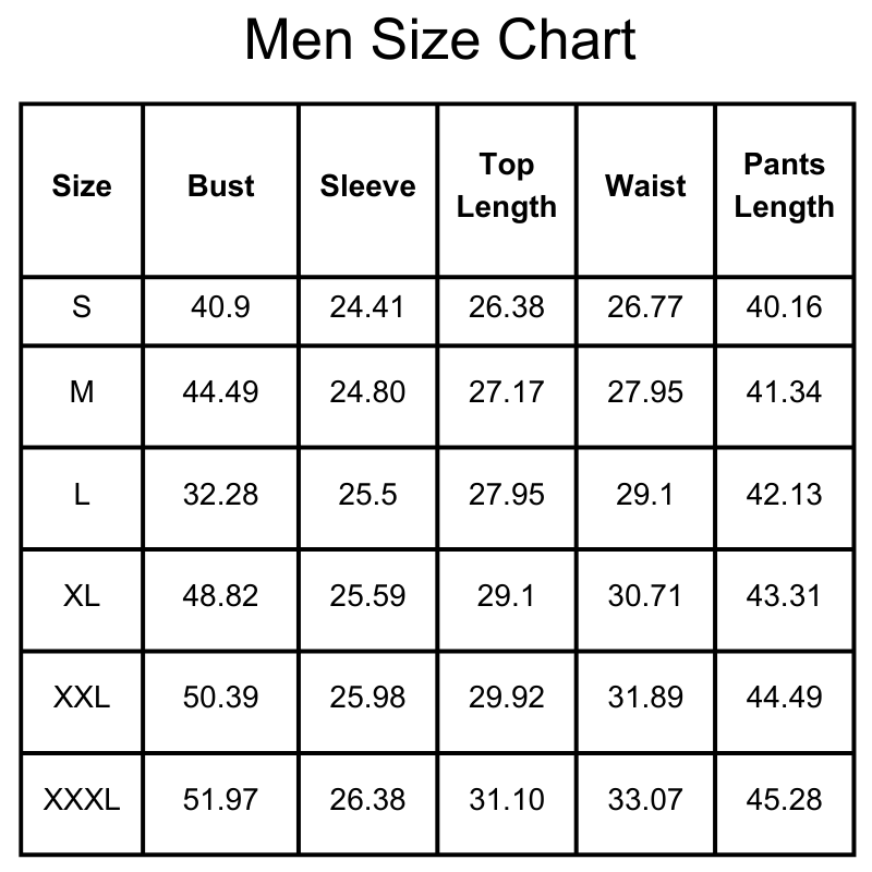 Size Chart(inches):