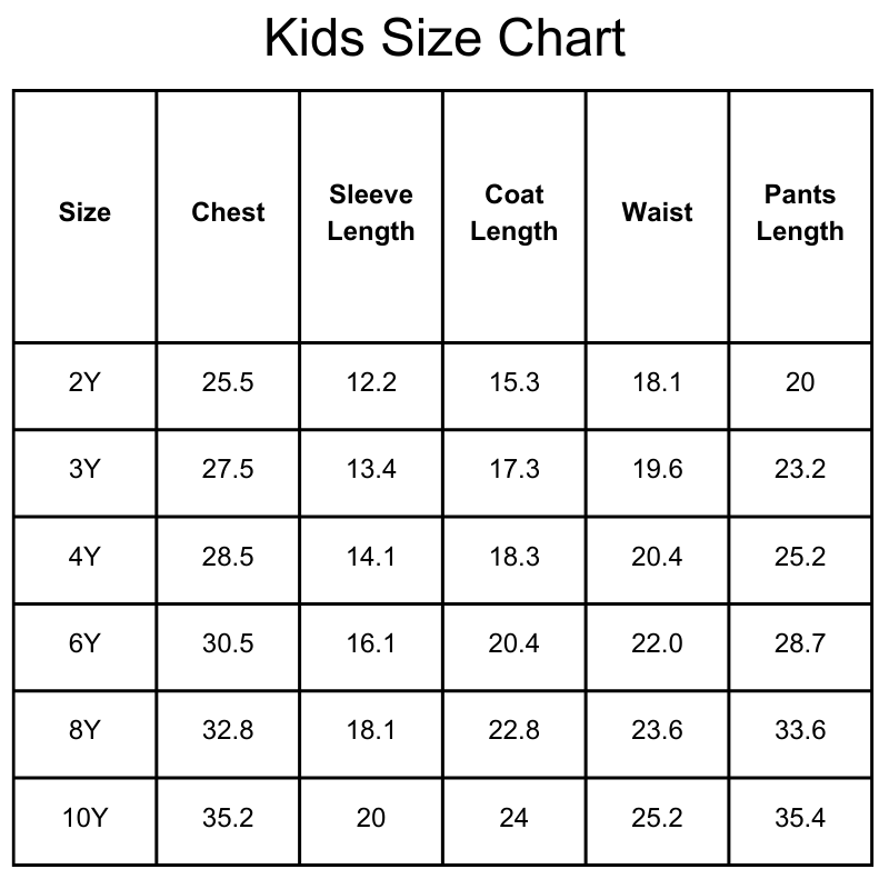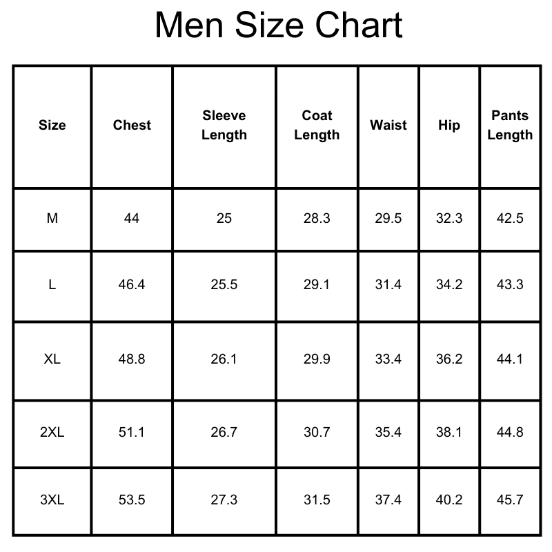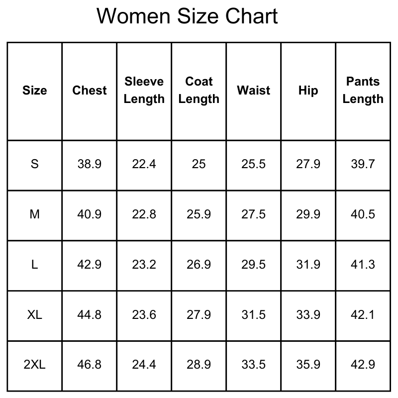 Size Chart(inches):