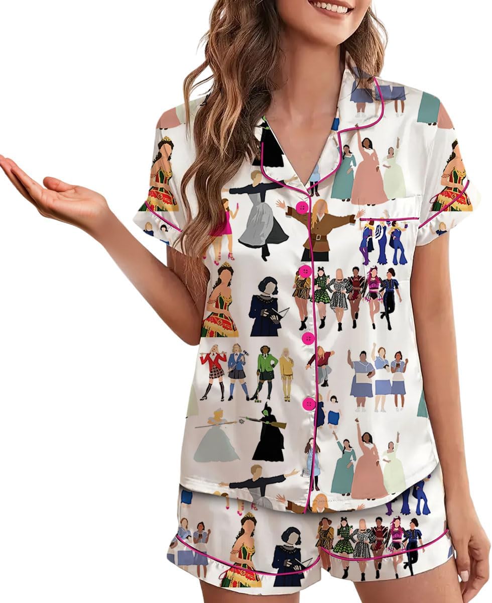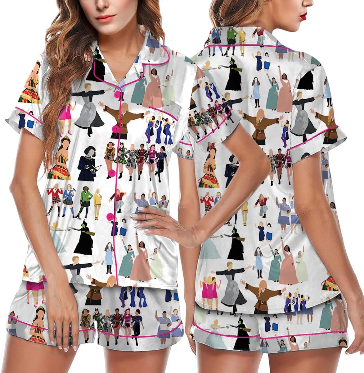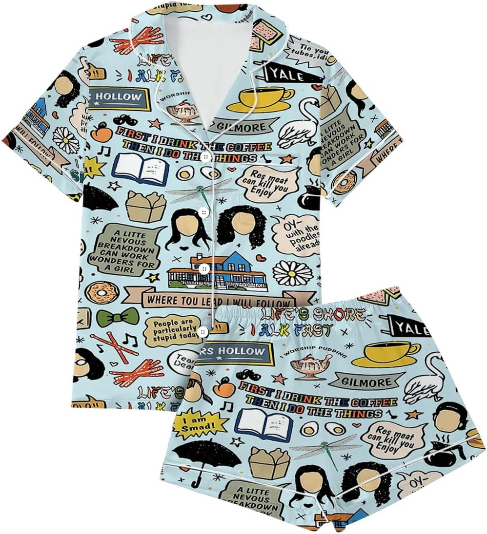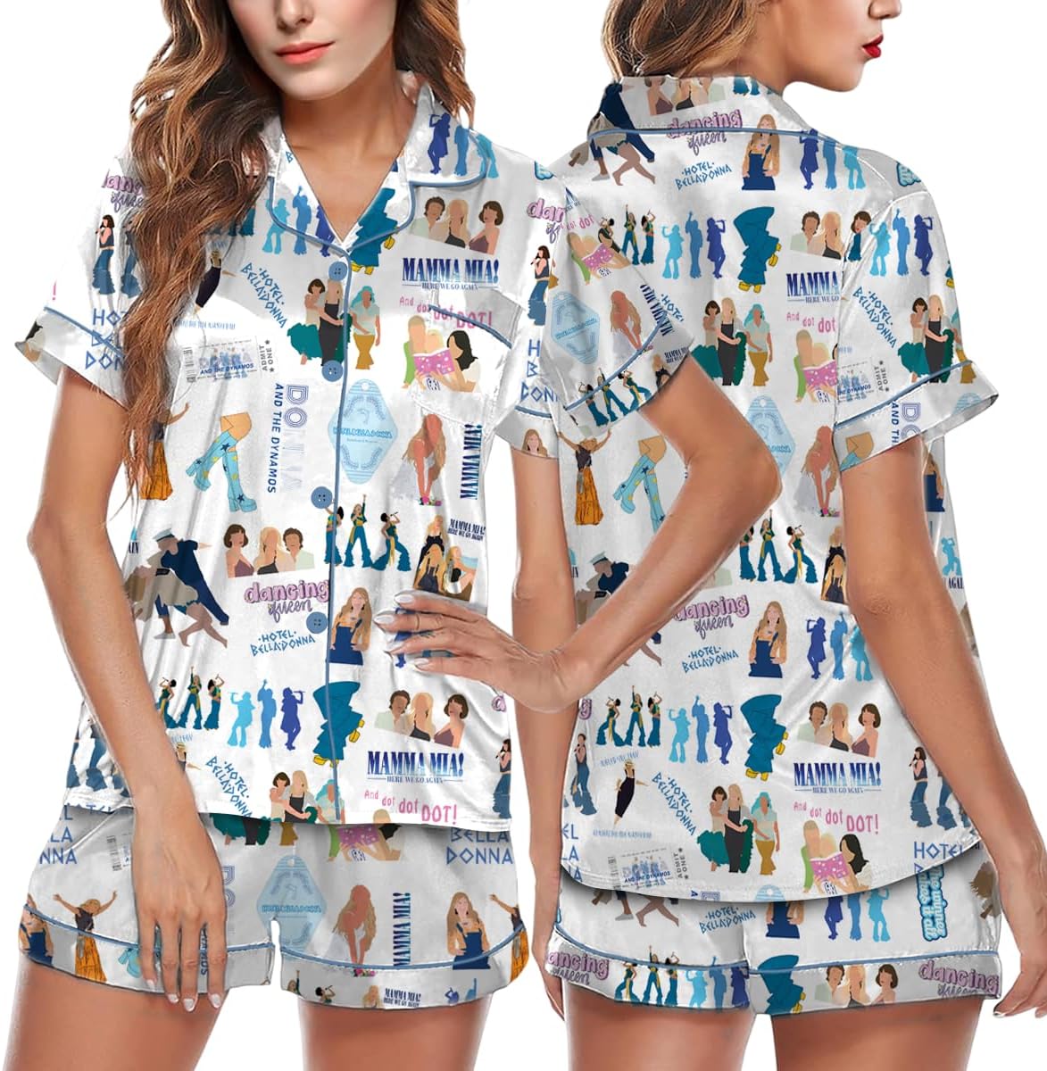 Design: Loungewear sets woman features a cute dog print on a classic silhouette, blending elegance with a touch of whimsy, The button-down top and elastic-waist shorts with side pockets offer lightweight comfort for effortless lounging