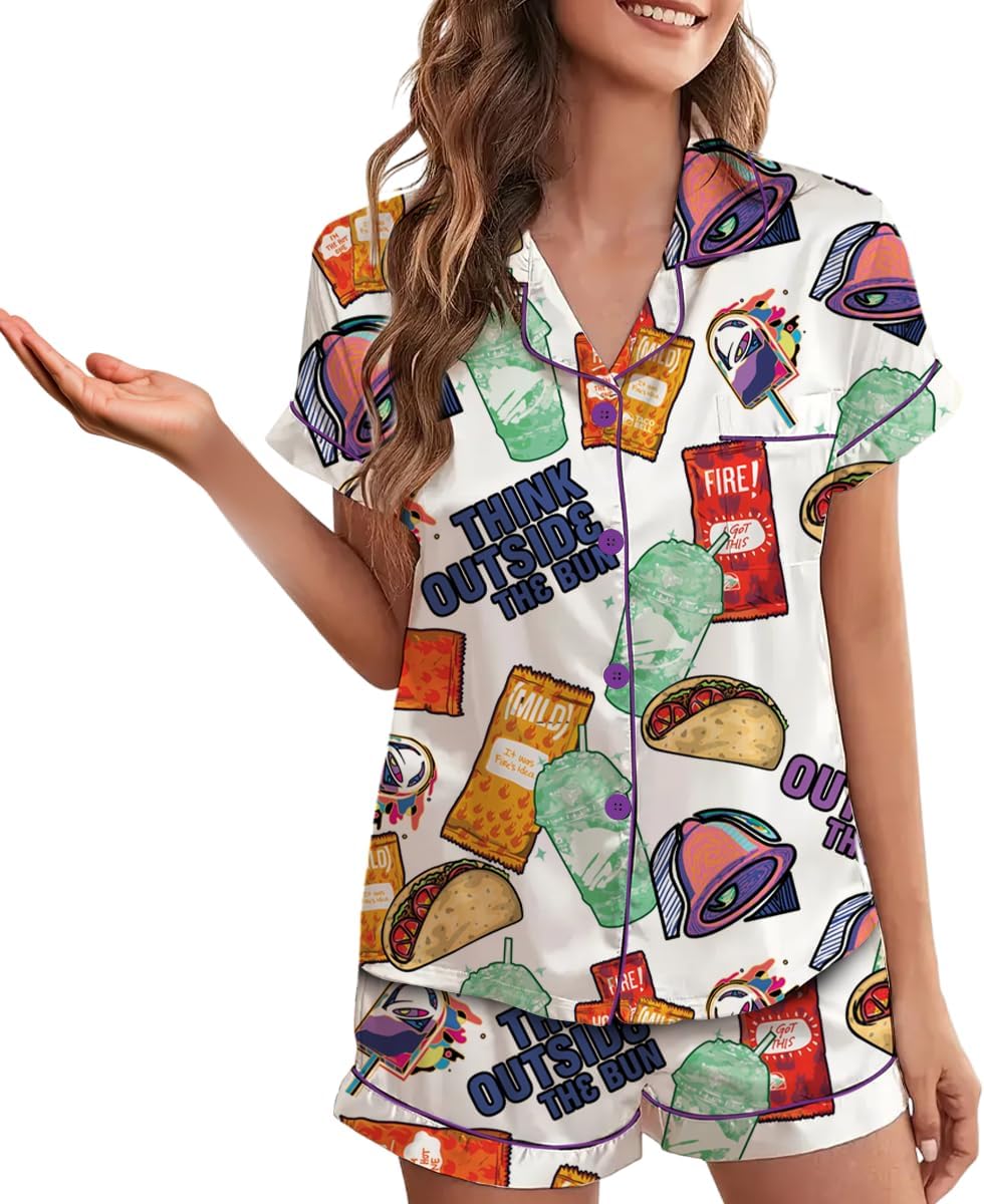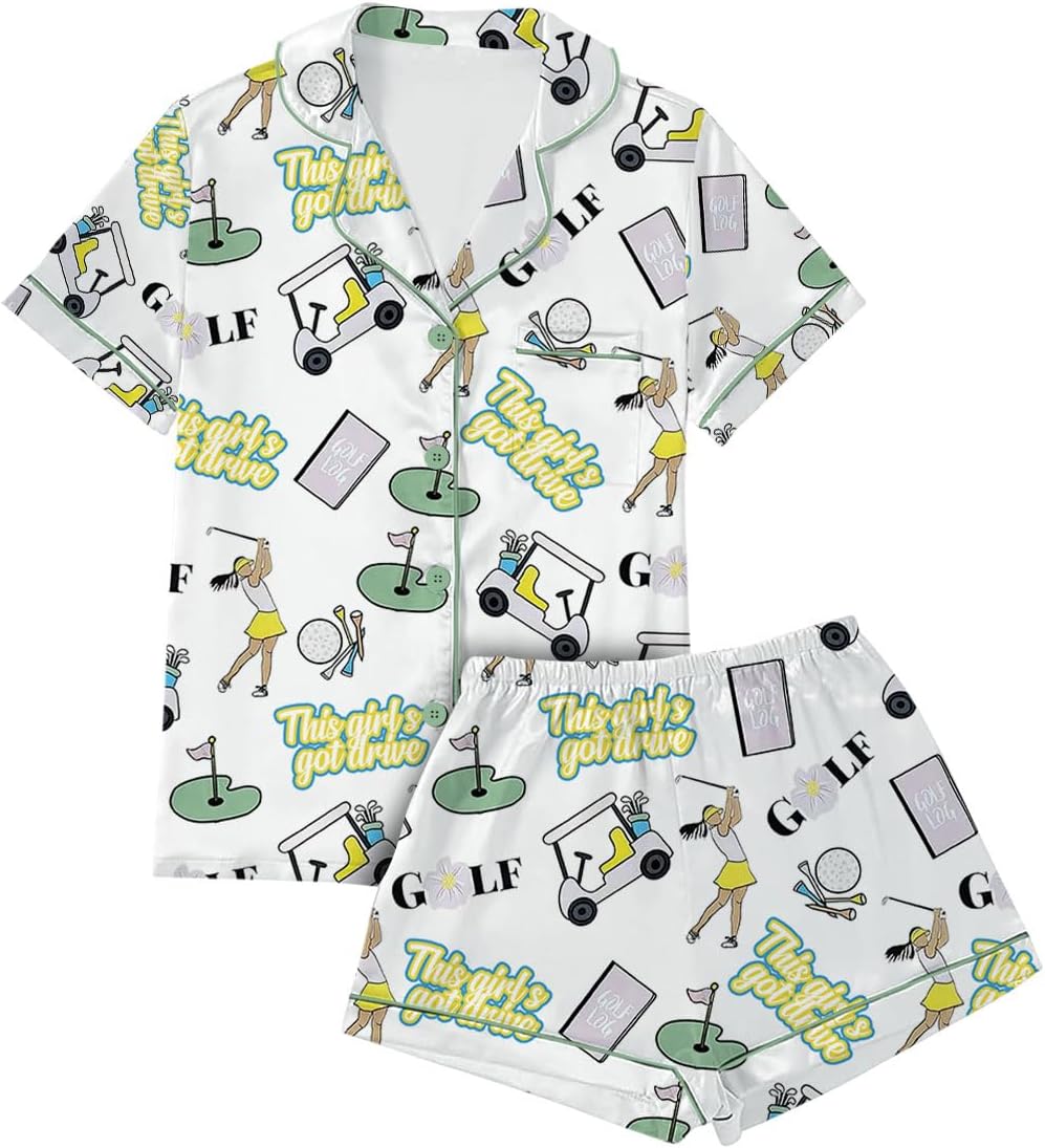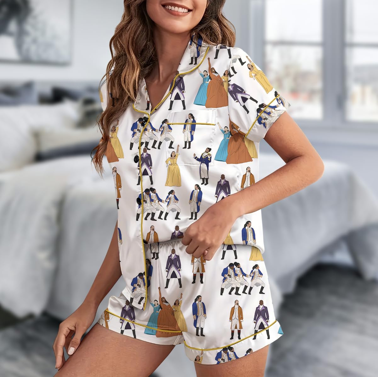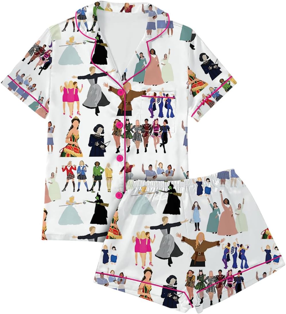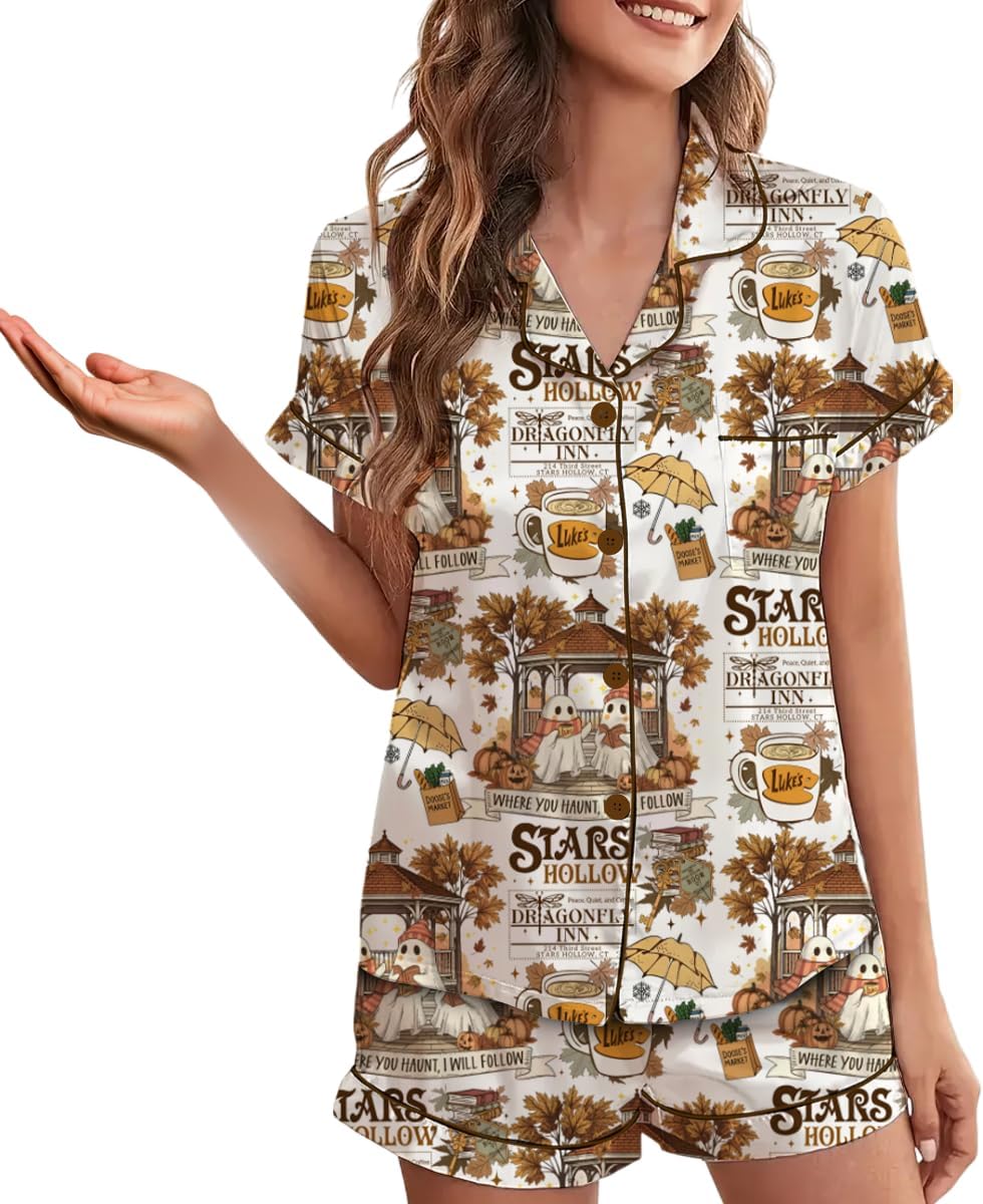 Design: Loungewear sets woman features a cute dog print on a classic silhouette, blending elegance with a touch of whimsy, The button-down top and elastic-waist shorts with side pockets offer lightweight comfort for effortless lounging
