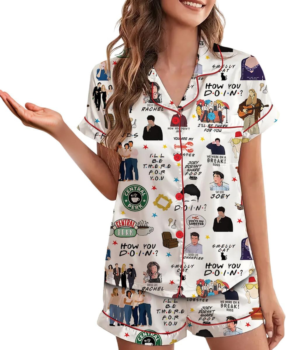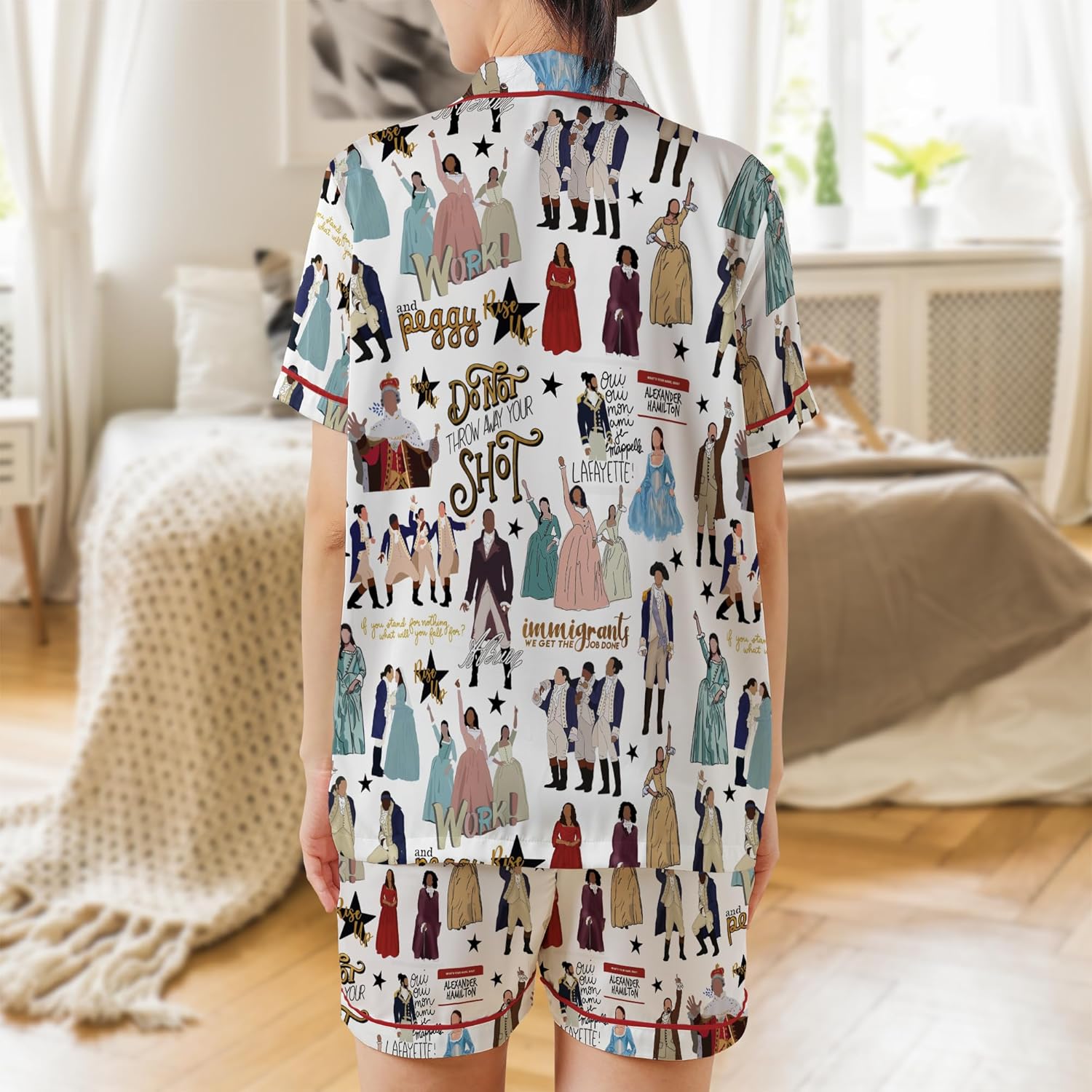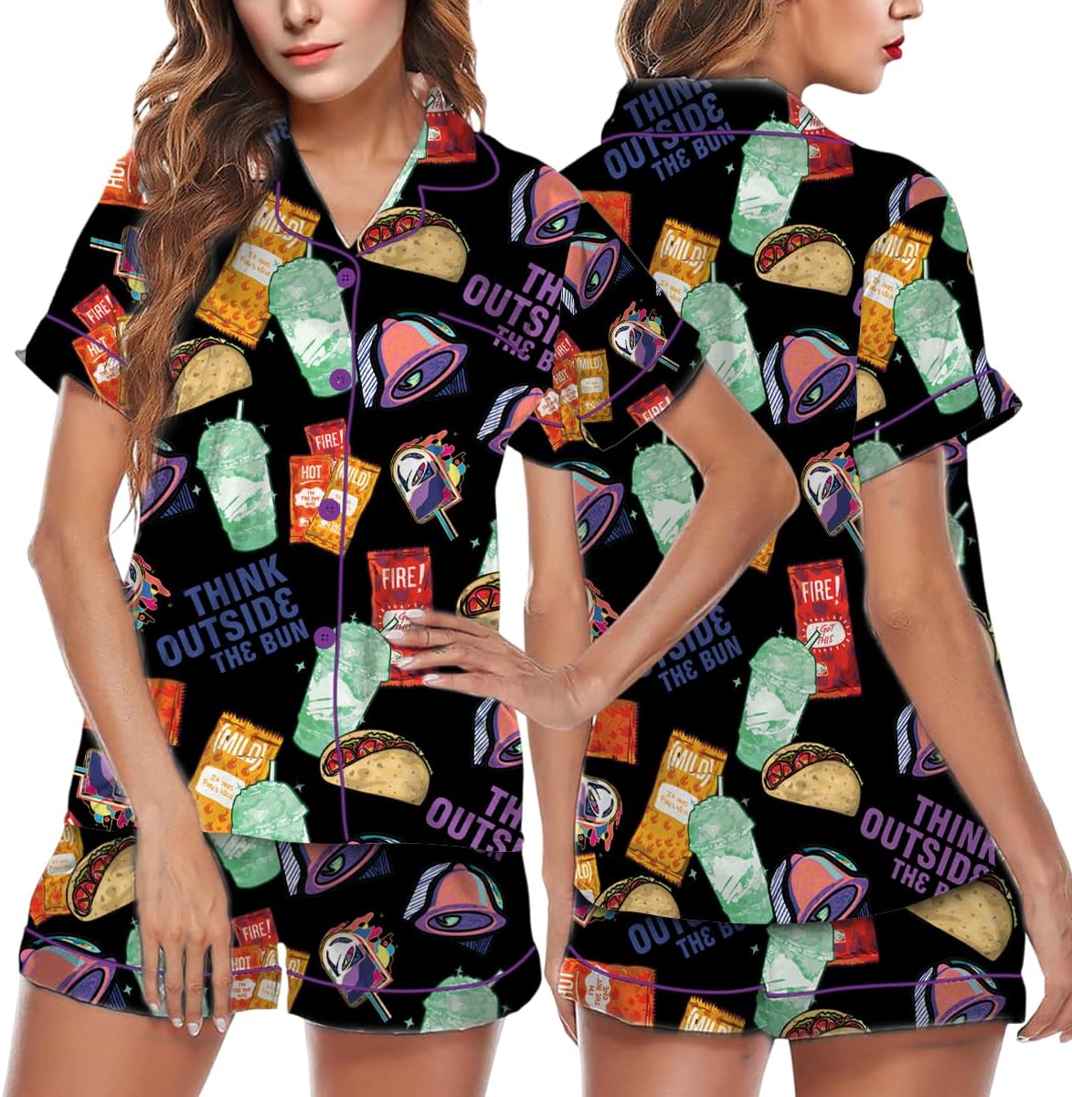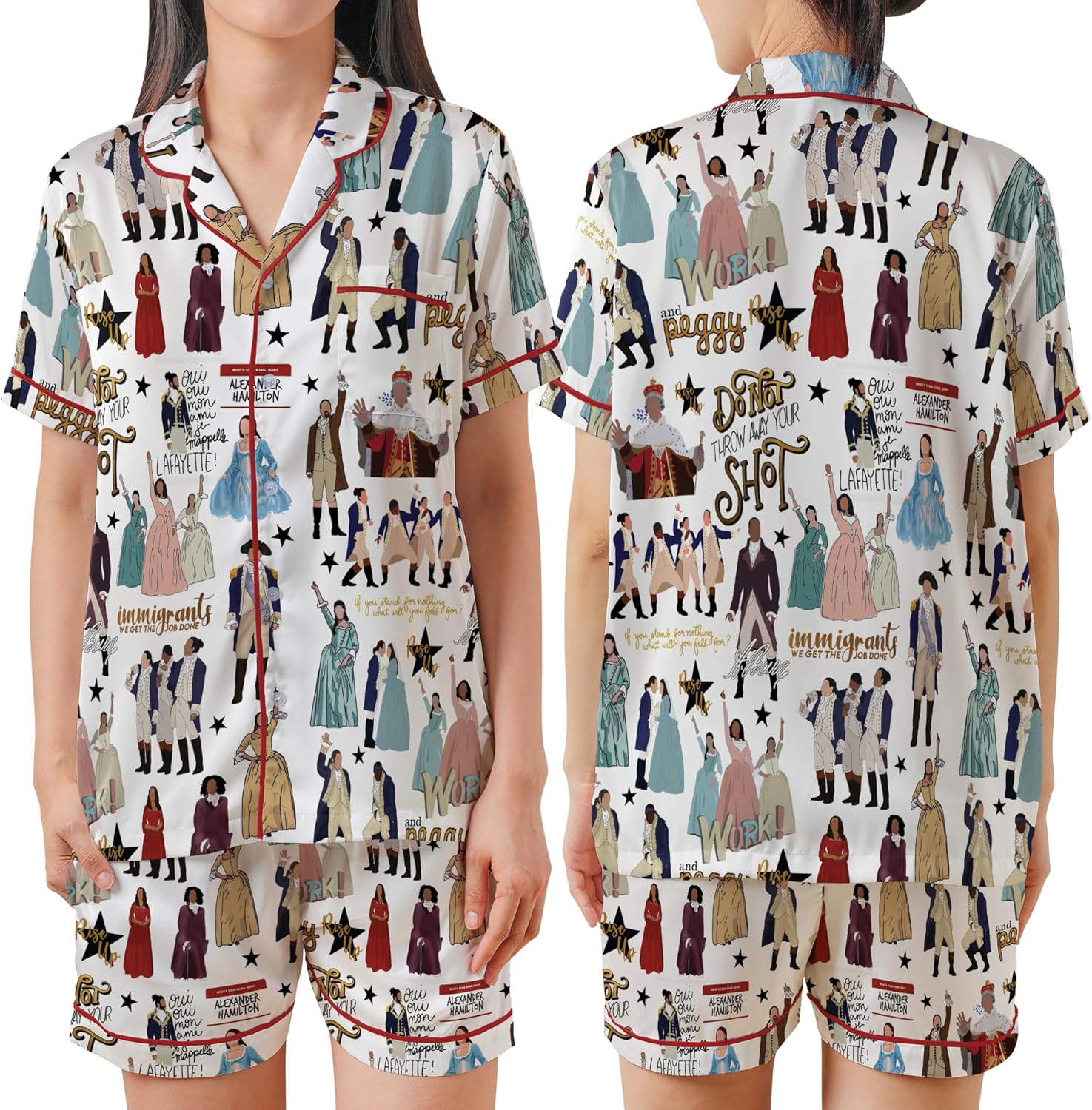 Design: Loungewear sets woman features a cute dog print on a classic silhouette, blending elegance with a touch of whimsy, The button-down top and elastic-waist shorts with side pockets offer lightweight comfort for effortless lounging