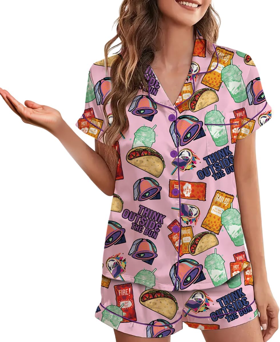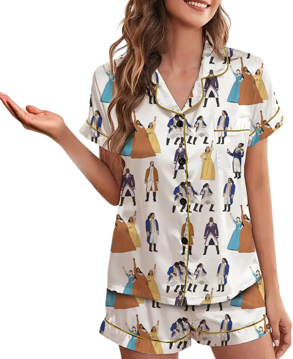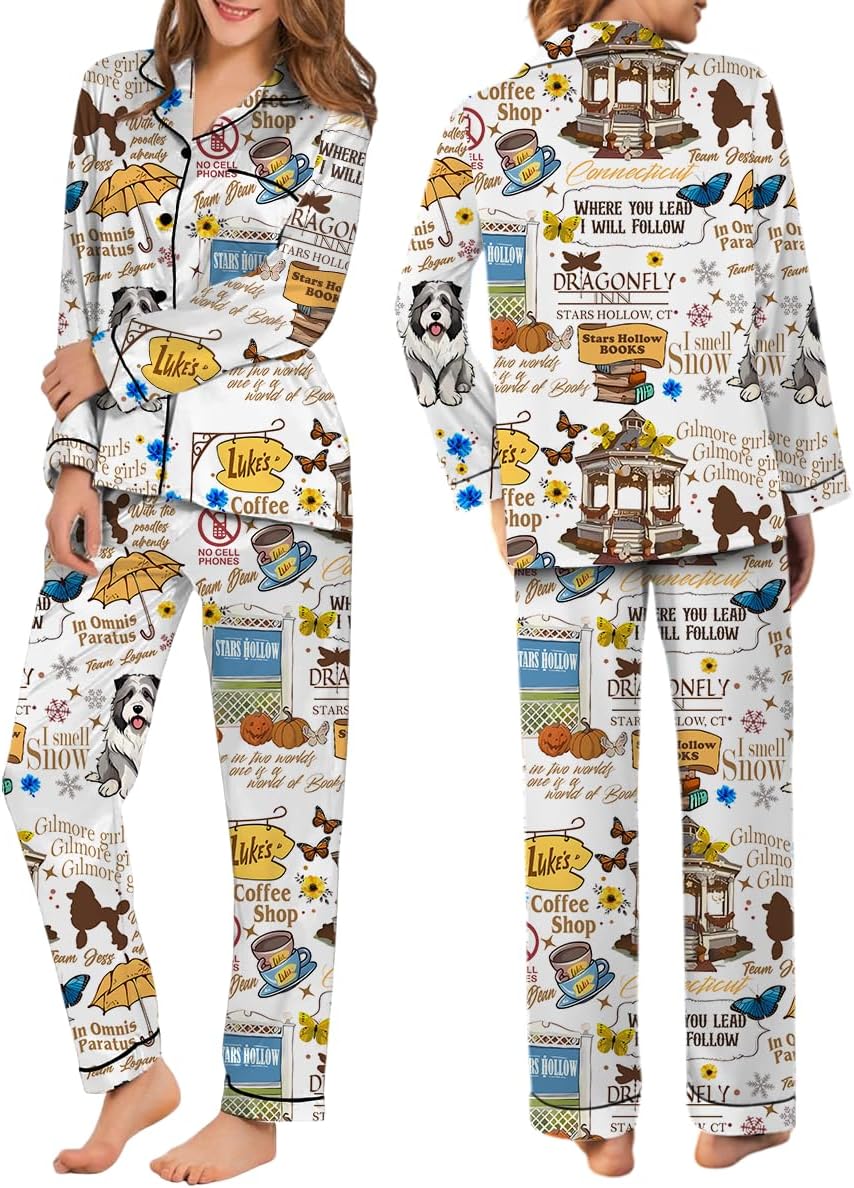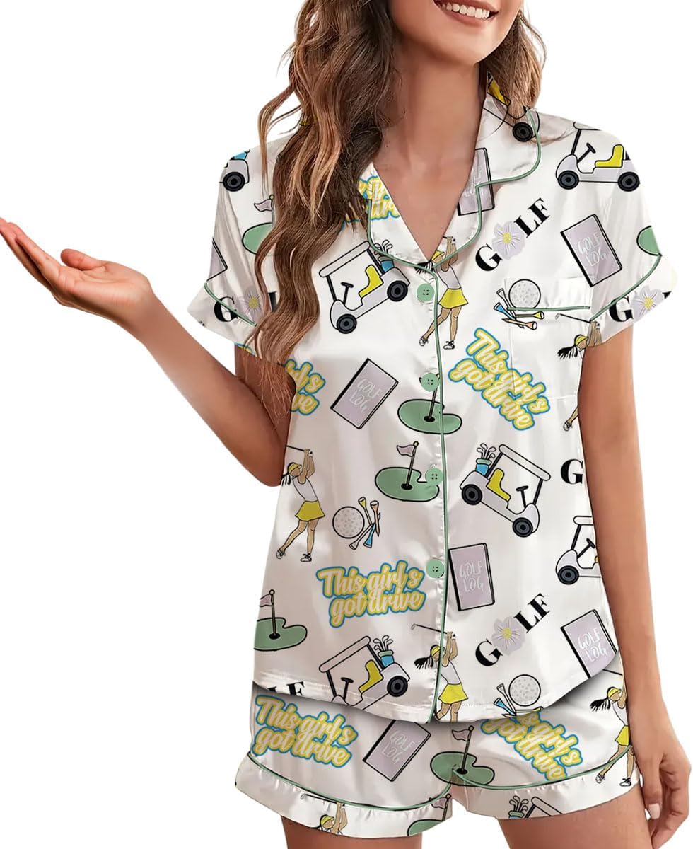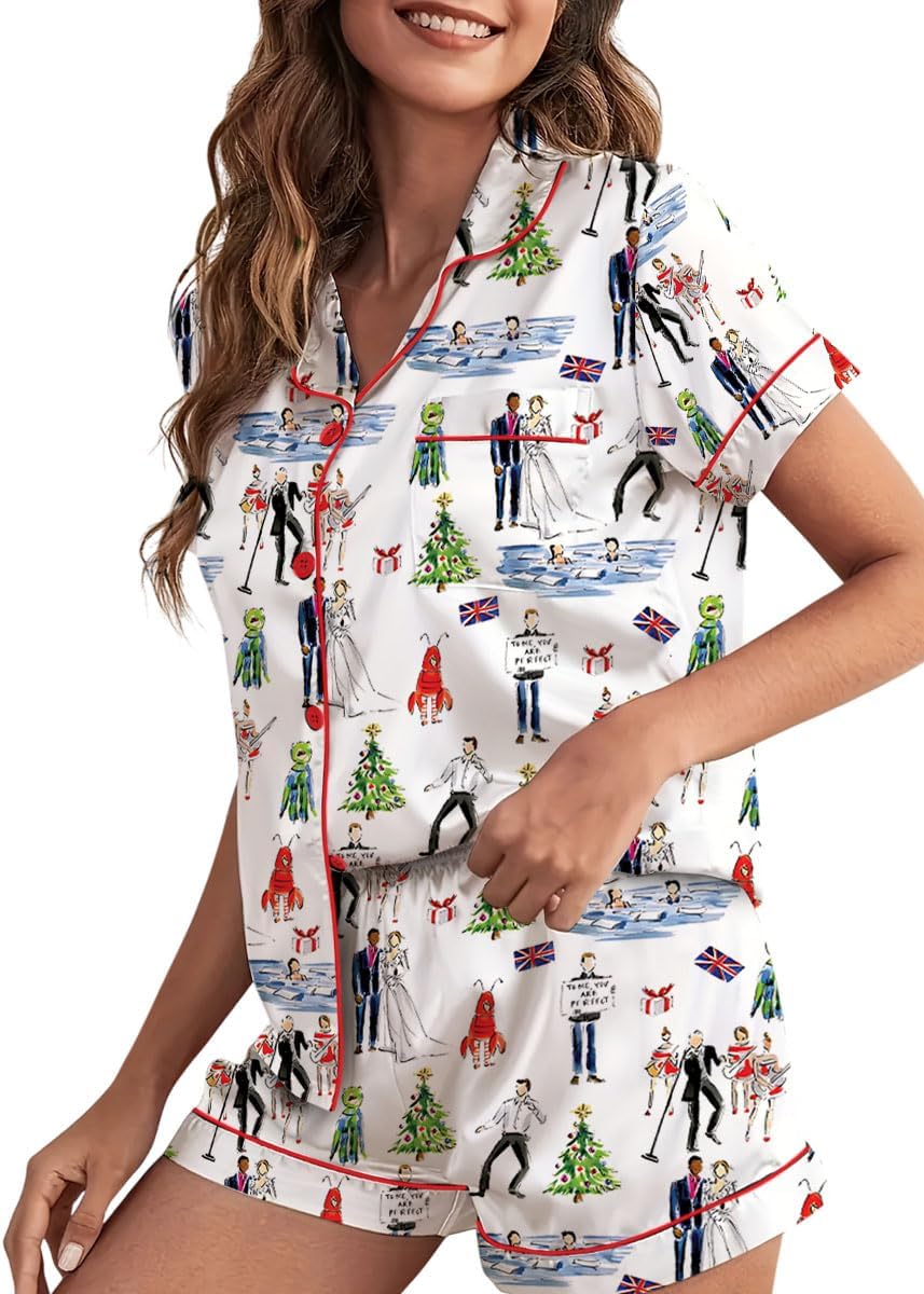 Design: Loungewear sets woman features a cute dog print on a classic silhouette, blending elegance with a touch of whimsy, The button-down top and elastic-waist shorts with side pockets offer lightweight comfort for effortless lounging