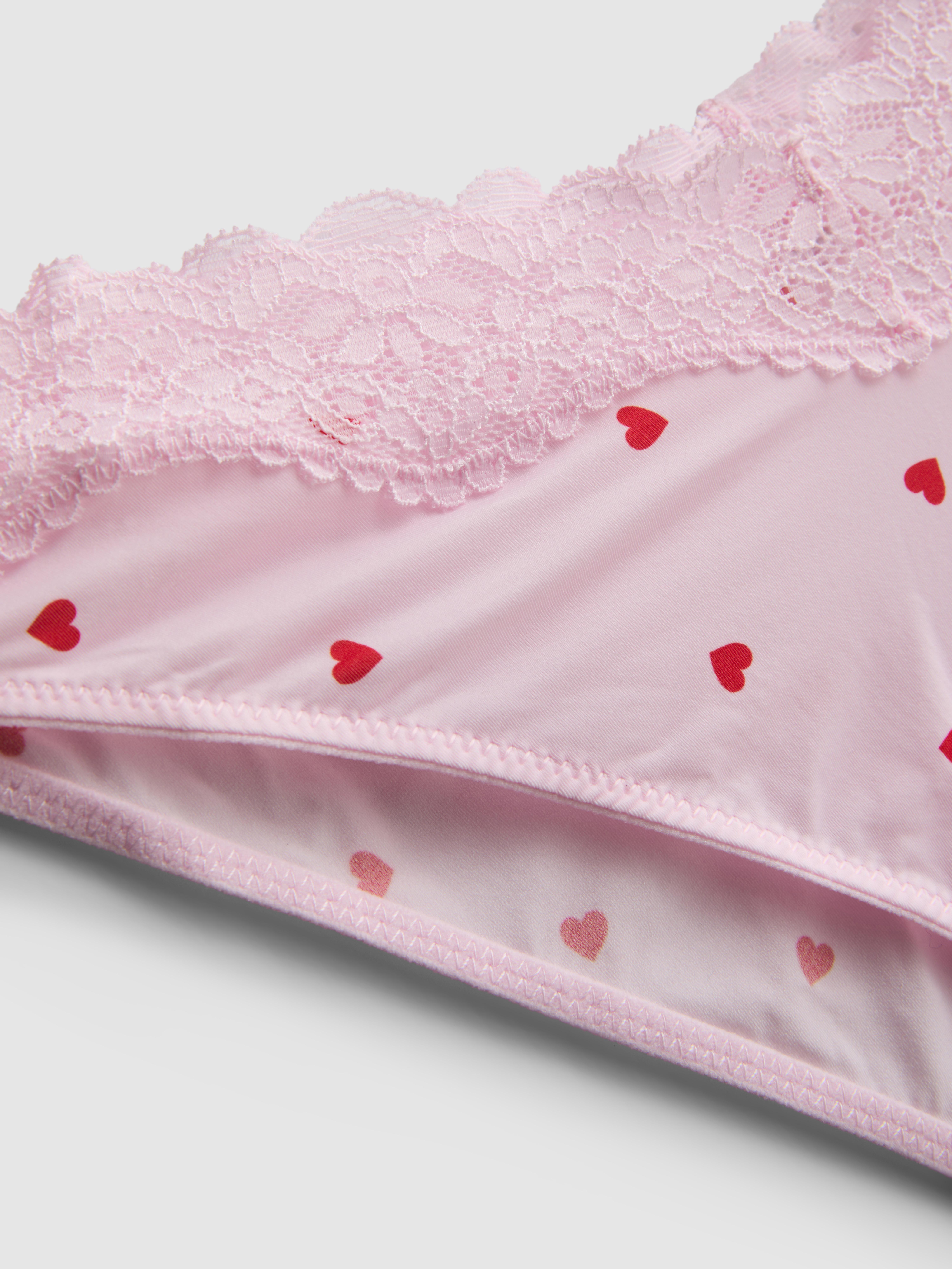 Model Size: S-10/12 Model Height: 175 cm Print: Heart Padding: Non-Padded Pantie Type: Brazilian briefs Bra Type: Balcony bra Wired: Wired Country of Origin: Vietnam Body: Polyamide 77%; Elastane 23% Lining: Polyester 100% Lining 2: Polyamide 72%; Elastane 28% Lining 3: Cotton 100% Lace: Polyamide 88%; Elastane 12%