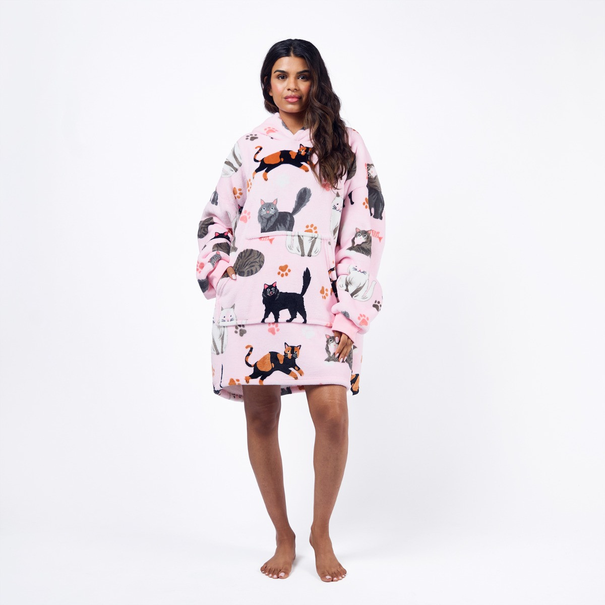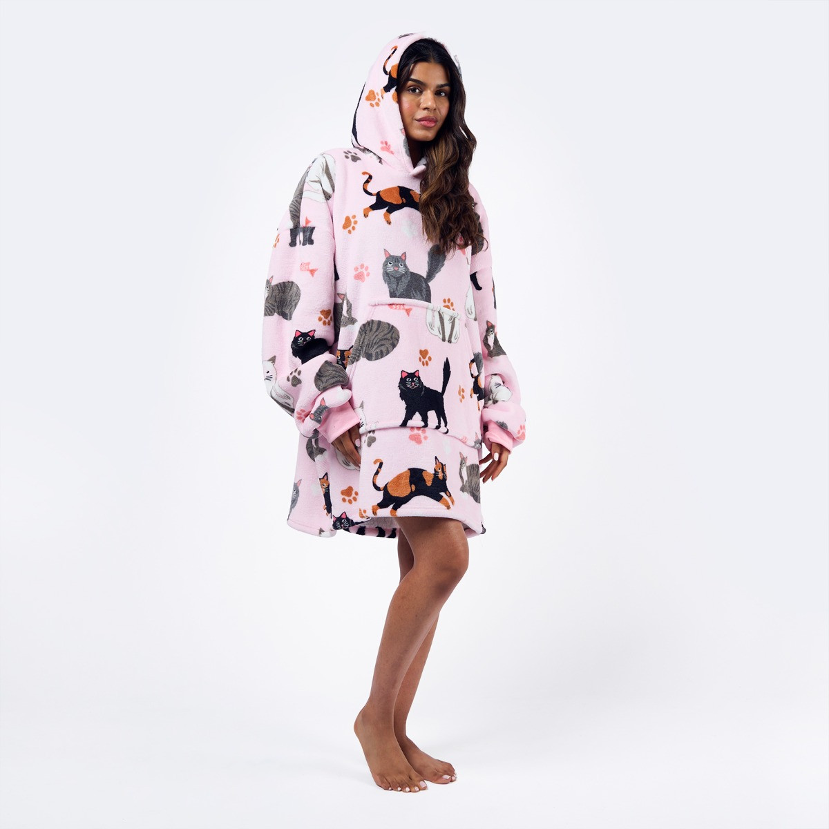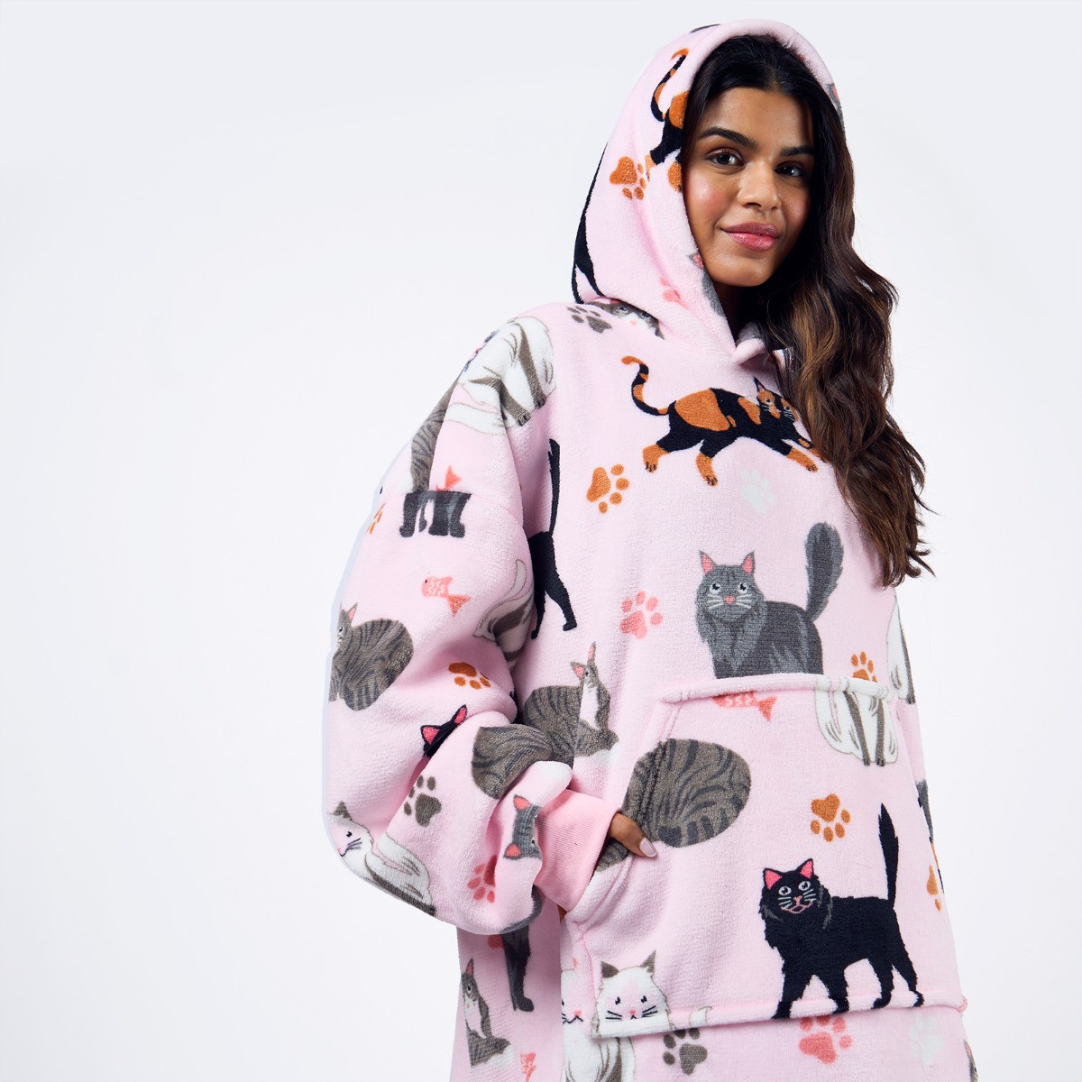 The OHS Cat Print Hoodie Blanket is the perfect cosy companion for feline lovers. Featuring a playful cat-themed design, this oversized hoodie blanket combines warmth and comfort with a touch of charm. Made from soft, plush fabric, it’s ideal for lounging, relaxing, or curling up on the sofa. With its relaxed fit and cosy feel, it’s a must-have for staying snug in style.