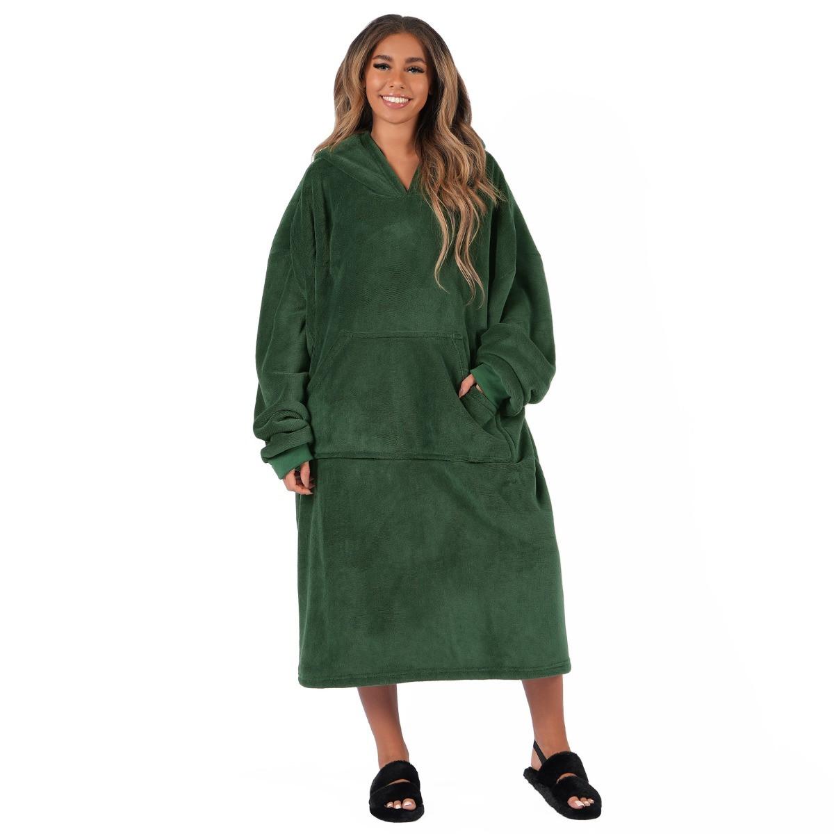 Ready for a comfy night in, the OHS Extra-Long Hooded Blanket is your new comfort buddy! Featuring a sumptuously soft touch with a plain flannel fleece outer fabric and a dreamy sherpa inner lining. Expertly matched with elastic cuffs and a double opening front pocket, this will make a fantastic gift for friends and family alike. Crafted for optimum ease, this is a durable, one-step care garment, used as a wearable blanket to keep you cosy and warm all year round. One size fits all with this product and it is ideal for packing up and taking with you to outdoor events.