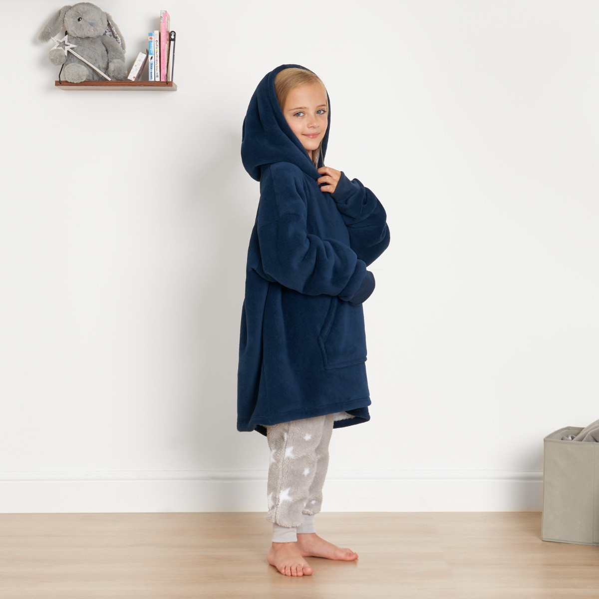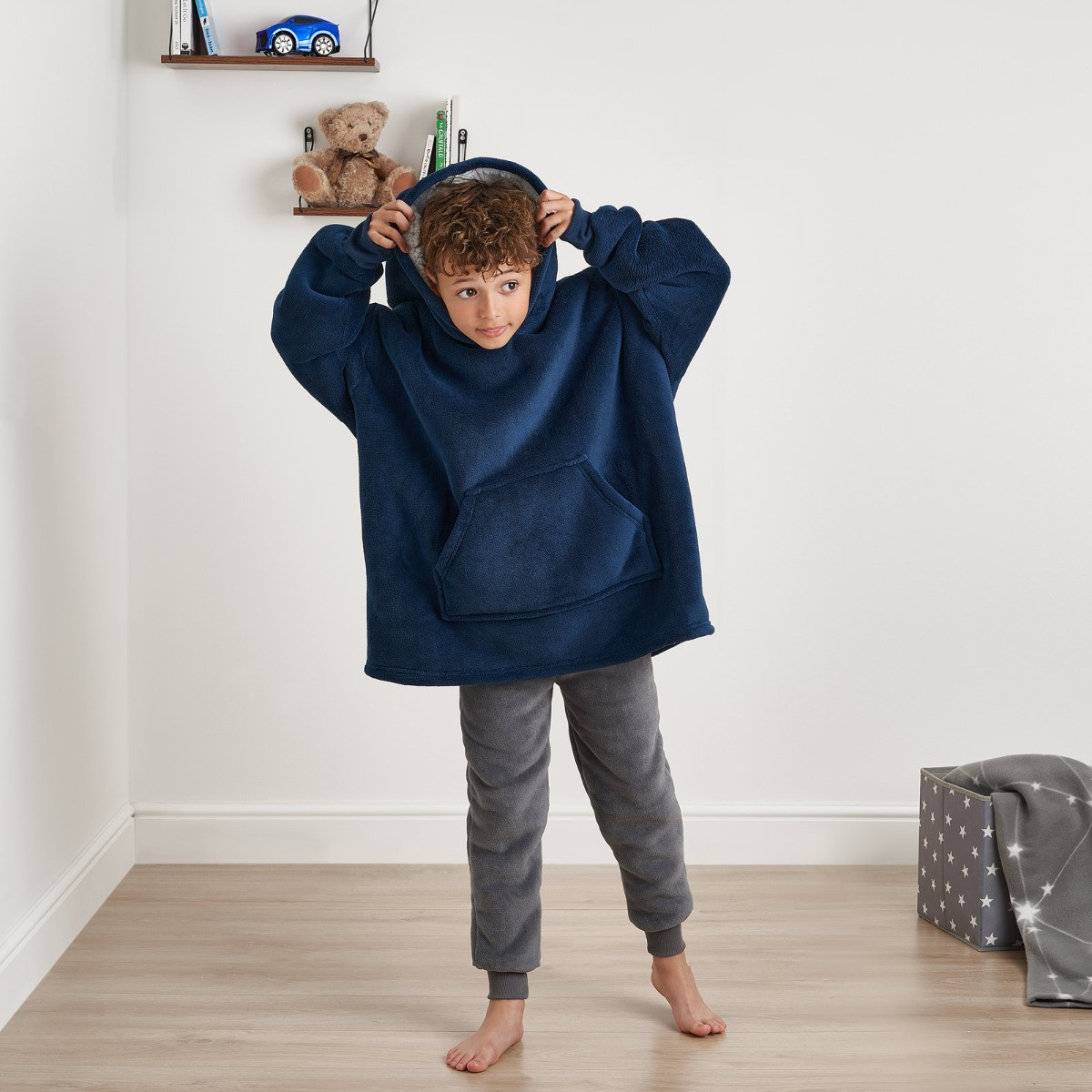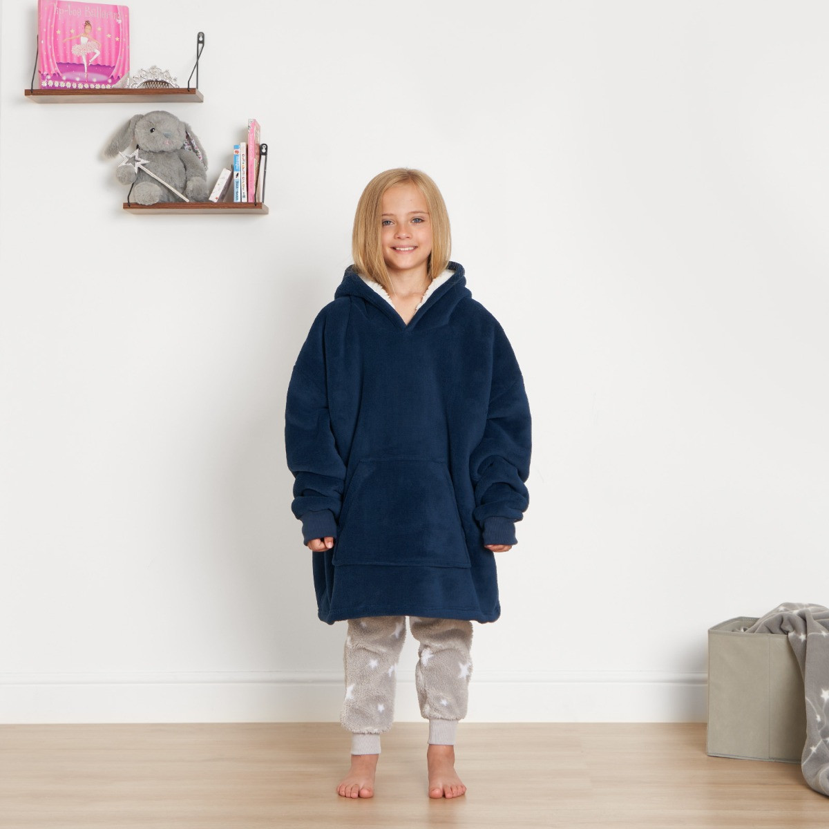 Introducing the OHS Sherpa Fleece Hoodie Blanket! This encompassing and warm hoodie features a sumptuously soft outer fabric and a plush sherpa fleece inner lining, making it a cosy piece of loungewear. Complete with colour matched elastic cuffs and a double opening front pocket, this makes for a fantastic gift for friends and family. This is a versatile and heat retaining product that is perfect for relaxing in as well as utilising for outdoor activities and traveling. Crafted for optimum ease, this is a durable, one-step care garment. Simply wash on 30 degrees. Wrap your little ones up in comfort with the OHS Sherpa Fleece Hoodie Blanket!