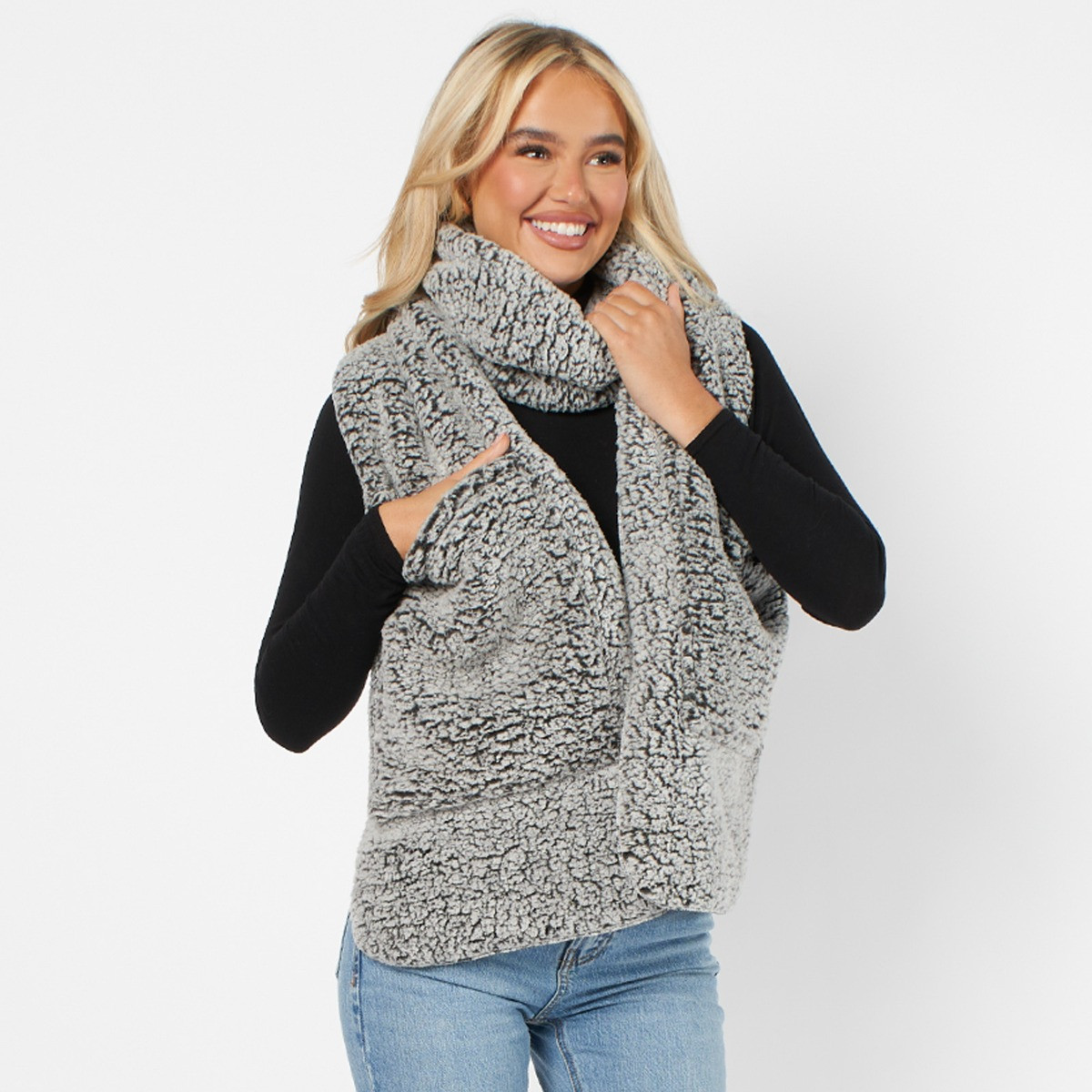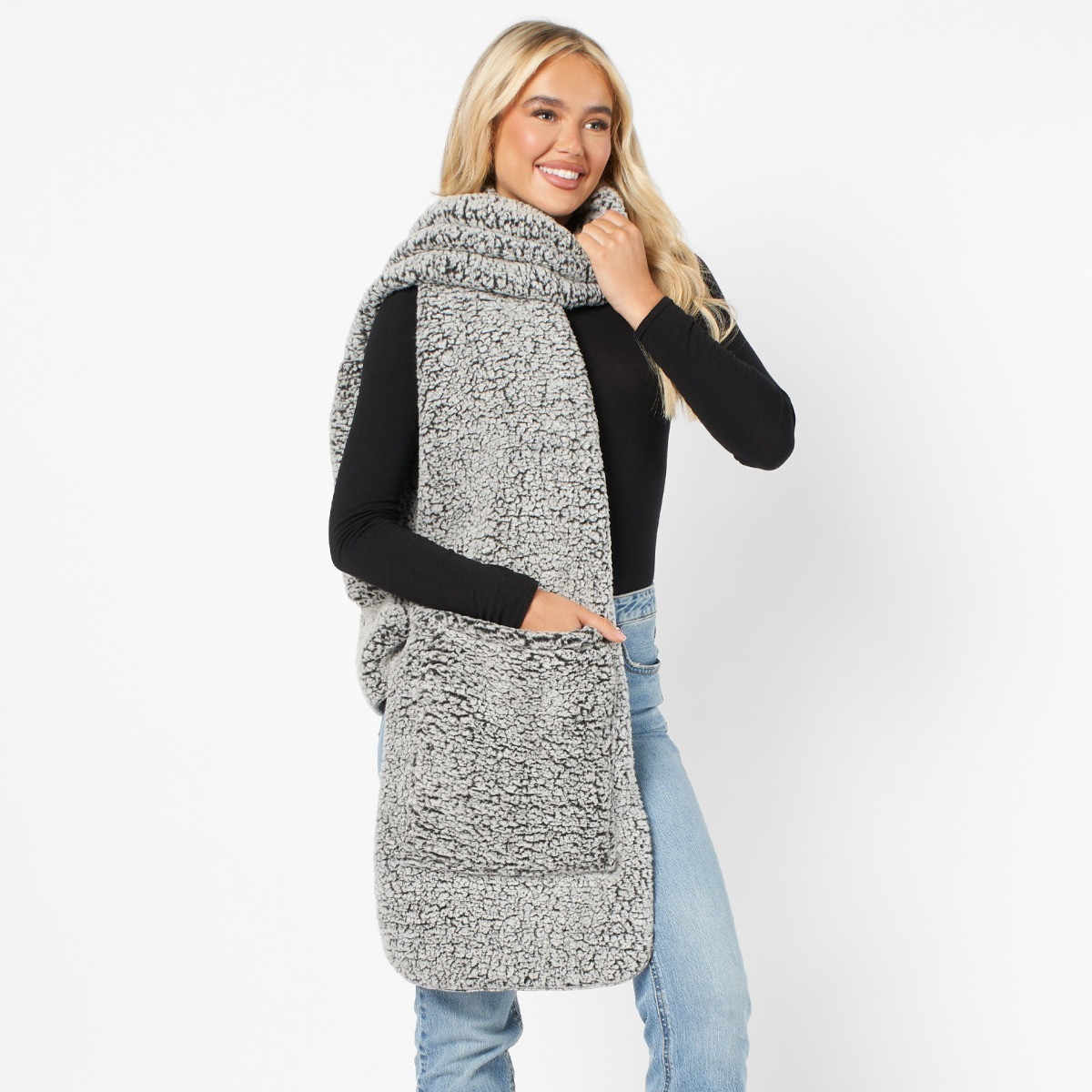 The OHS Teddy Marl Pocket Scarf in Blush, designed in a versatile one-size-fits-all, is a cozy and stylish accessory for colder days. Crafted with soft, textured fabric and adorned with handy pockets, it's perfect for keeping you warm and stashing small essentials. Elevate your winter wardrobe with this blush-hued, functional fashion piece.