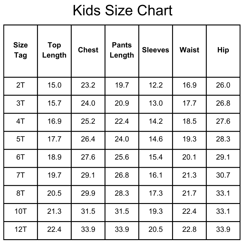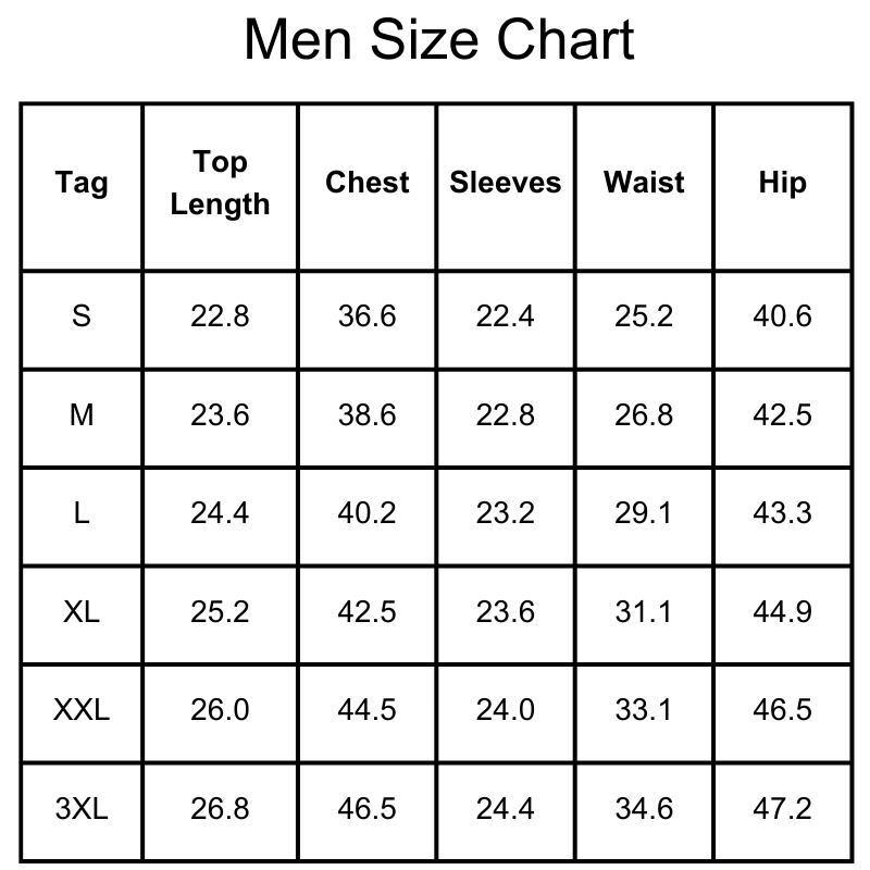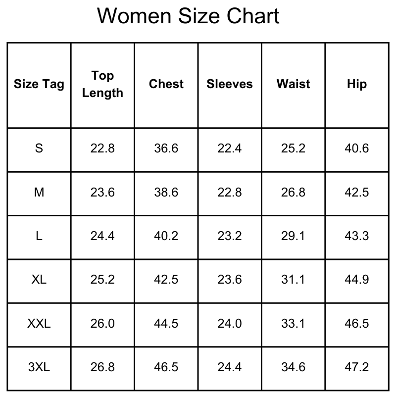Size Chart(inches):