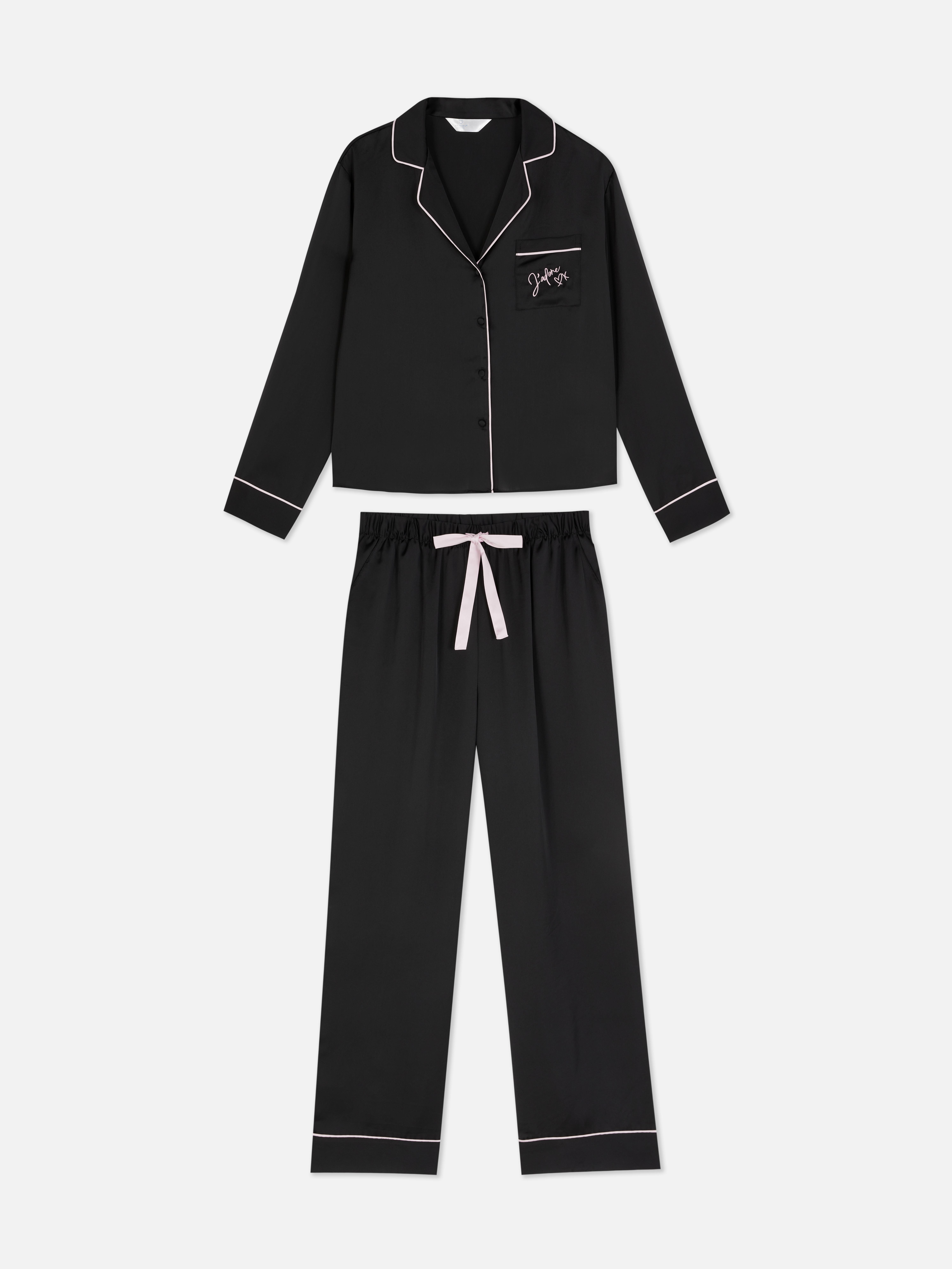 Neckline: Collared Sleeve Length: Full Length Leg Length: Full Length Model Size: S- 10/12 Model Height: 177 cm Print: Solid Color Material: 100% Polyester Fire Safety: WARNING! Keep away from fire Country of Origin: Cambodia Top: Polyester 100% Bottom: Polyester 100% Fabrication: Satin