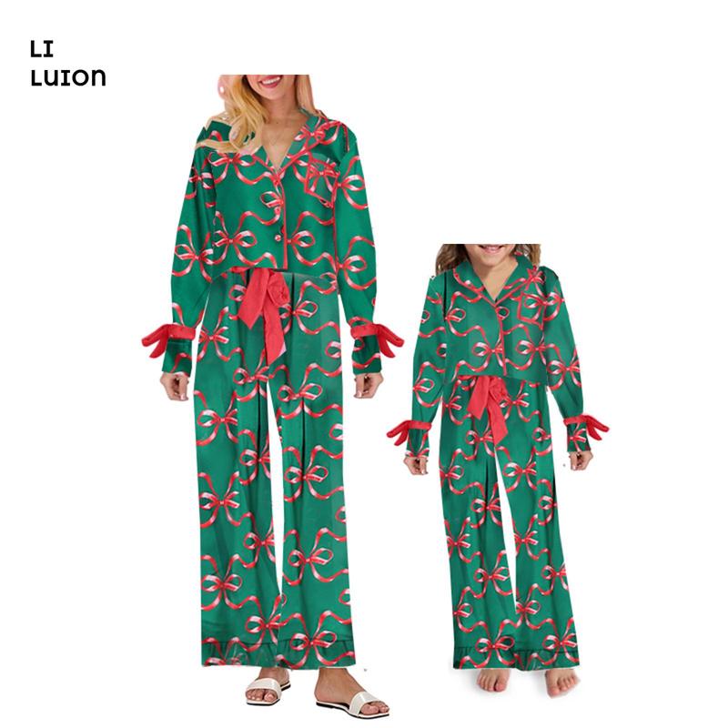 MomSize(cm)S Tops Length: 50 Bust: 106 Sleeve: 61 Pants Length: 103 Waist: 88 Hip: 110M Tops Length: 51 Bust: 110 Sleeve: 62 Pants Length: 104 Waist: 92 Hip: 114L Tops Length: 52 Bust: 116 Sleeve: 63 Pants Length: 105 Waist: 98 Hip: 120XL Tops Length: 53 Bust: 122 Sleeve: 64 Pants Length: 106 Waist: 104 Hip: 126XXL Tops Length: 54 Bust: 128 Sleeve: 65 Pants Length: 107 Waist: 110 Hip: 132Size(inch)S Tops Length: 19.69 Bust: 41.73 Sleeve: 24.02 Pants Length: 40.55 Waist: 34.65 Hip: 43.31M Tops Length: 20.08 Bust: 43.31 Sleeve: 24.41 Pants Length: 40.94 Waist: 36.22 Hip: 44.88L Tops Length: 20.47 Bust: 45.67 Sleeve: 24.80 Pants Length: 41.34 Waist: 38.58 Hip: 47.24XL Tops Length: 20.87 Bust: 48.03 Sleeve: 25.20 Pants Length: 41.73 Waist: 40.94 Hip: 49.61XXL Tops Length: 21.26 Bust: 50.39 Sleeve: 25.59 Pants Length: 42.13 Waist: 43.31 Hip: 51.97 KidSize(cm)3T Tops Length: 32 Bust: 64.5 Sleeve: 33 Pants Length: 53 Waist: 63 Hip: 674T Tops Length: 34 Bust: 67 Sleeve: 35.5 Pants Length: 58 Waist: 66 Hip: 705T Tops Length: 36 Bust: 69.5 Sleeve: 38 Pants Length: 63 Waist: 69 Hip: 736T Tops Length: 38 Bust: 72.5 Sleeve: 40.5 Pants Length: 68 Waist: 72 Hip: 768T Tops Length: 40 Bust: 86.5 Sleeve: 45.5 Pants Length: 78 Waist: 80 Hip: 8210T Tops Length: 42 Bust: 89.5 Sleeve: 50.5 Pants Length: 88 Waist: 88 Hip: 8812T Tops Length: 44 Bust: 93.5 Sleeve: 55 Pants Length: 97 Waist: 94 Hip: 97Size(inch)3T Tops Length: 12.60 Bust: 25.39 Sleeve: 12.99 Pants Length: 20.87 Waist: 24.80 Hip: 26.384T Tops Length: 13.39 Bust: 26.38 Sleeve: 13.98 Pants Length: 22.83 Waist: 25.98 Hip: 27.565T Tops Length: 14.17 Bust: 27.36 Sleeve: 14.96 Pants Length: 24.80 Waist: 27.17 Hip: 28.746T Tops Length: 14.96 Bust: 28.54 Sleeve: 15.94 Pants Length: 26.77 Waist: 28.35 Hip: 29.928T Tops Length: 15.75 Bust: 34.06 Sleeve: 17.91 Pants Length: 30.71 Waist: 31.50 Hip: 32.2810T Tops Length: 16.54 Bust: 35.24 Sleeve: 19.88 Pants Length: 34.65 Waist: 34.65 Hip: 34.6512T Tops Length: 17.32 Bust: 36.81 Sleeve: 21.65 Pants Length: 38.19 Waist: 37.01 Hip: 38.19 Specification:Name: Mommy and Me Matching PajamasMaterial: 95%Elastane and 5%CottonPattern: Bow Package Contents1* Tops + 1* Pants Friendly Tips:1. Please kindly allow a 2-3% difference according to manual measurement.2. Please check the measurement chart carefully before you buy the item. (1 inch = 2.54 cm)3. Please note that a slight color difference should be acceptable due to the light and screen. Thanks. PromiseIf the product has any quality problems, please tell us, and we will help you solve the problem as quickly as possible.