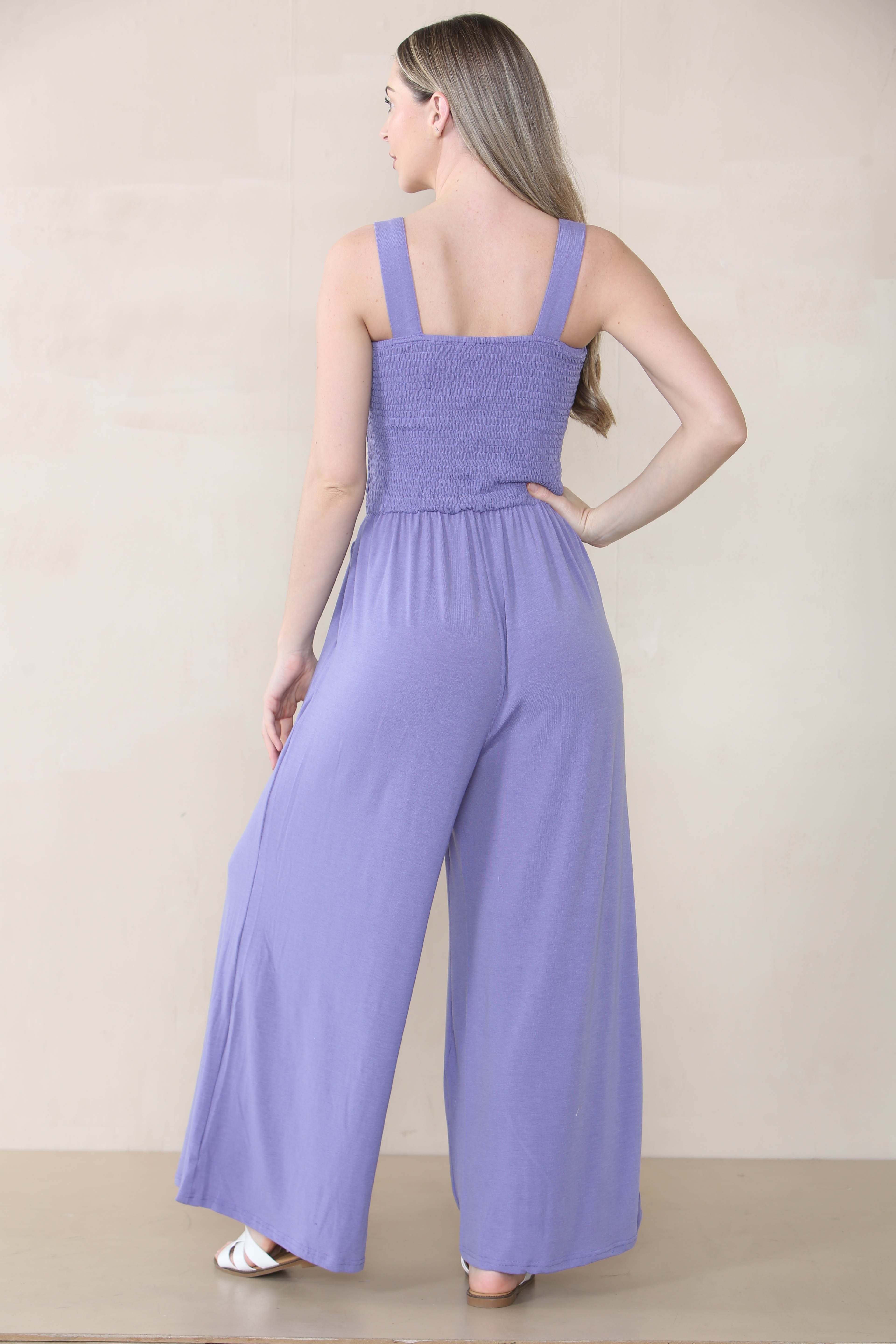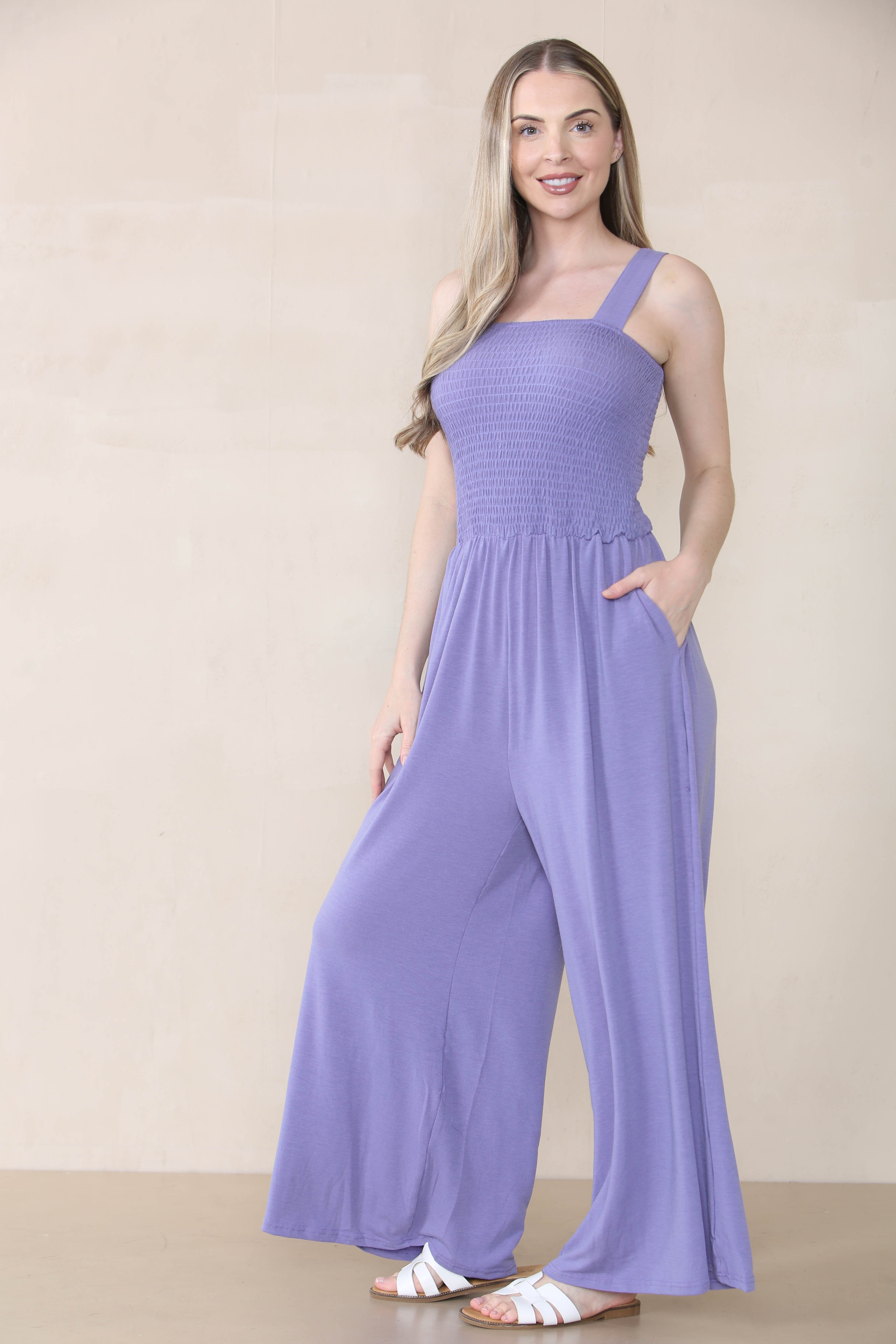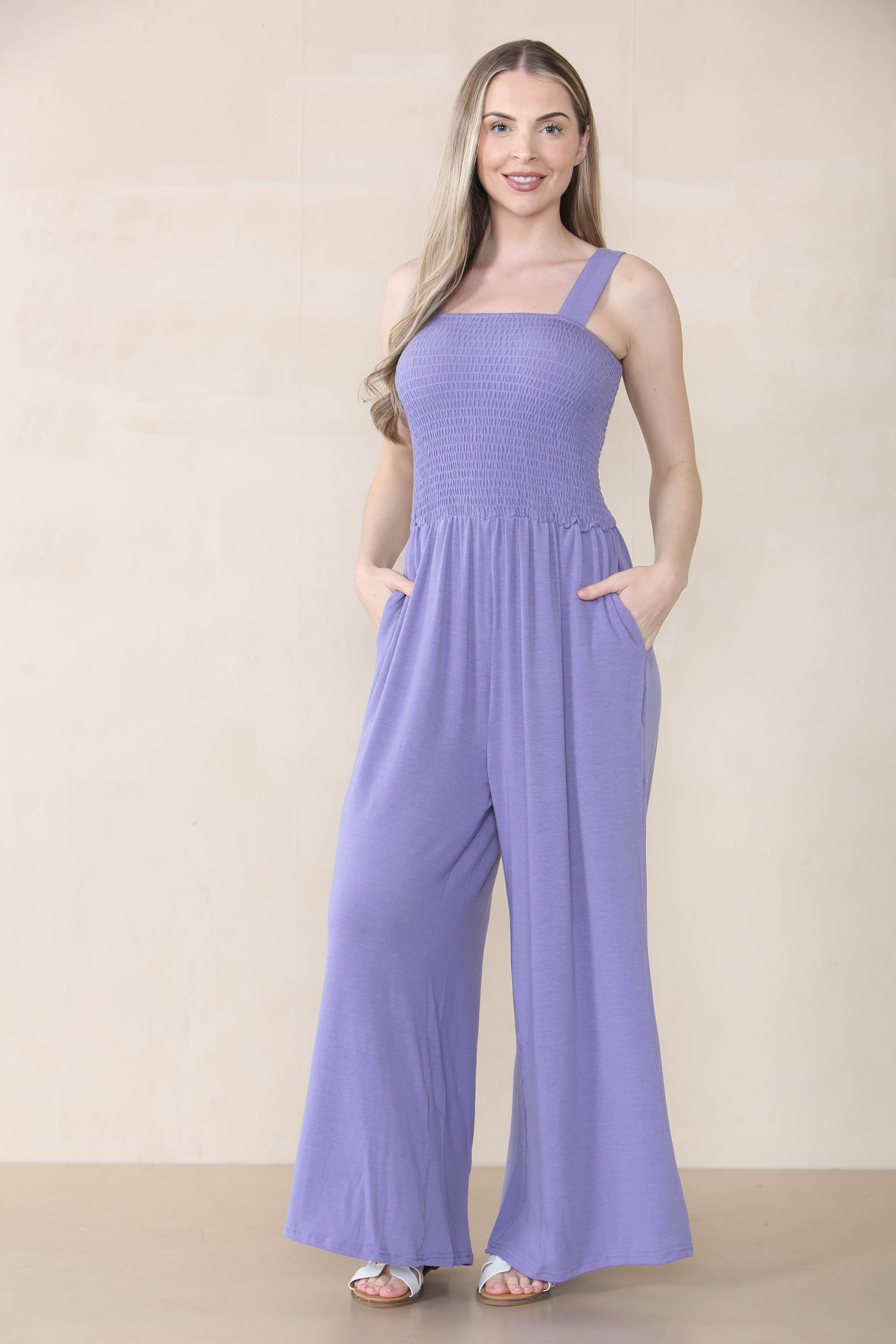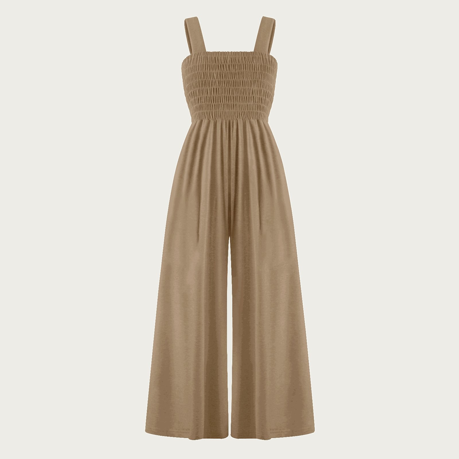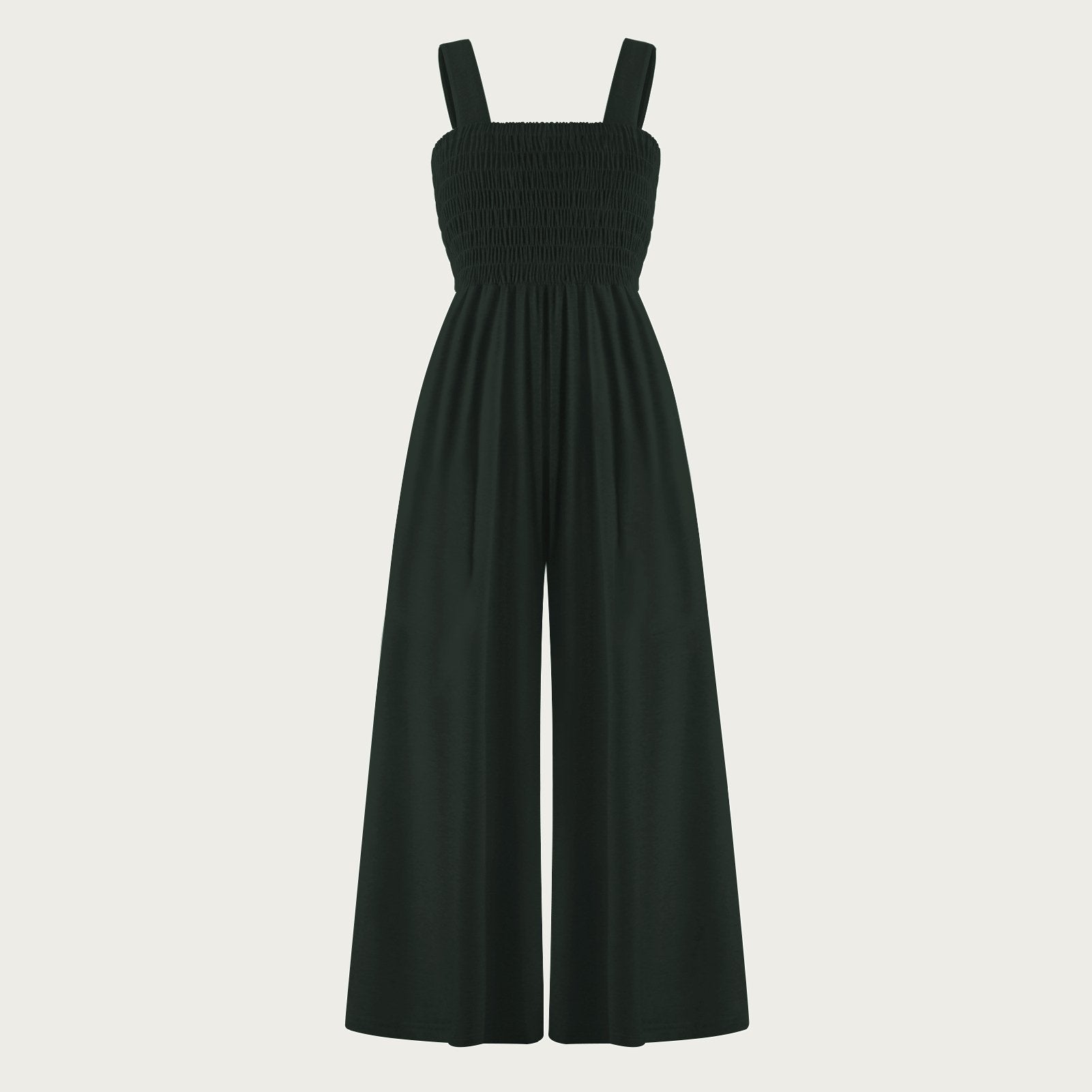 This stunning jumpsuit boasts a flattering ruched design that accentuates the waist, while its thick straps provide both support and a chic aesthetic.
