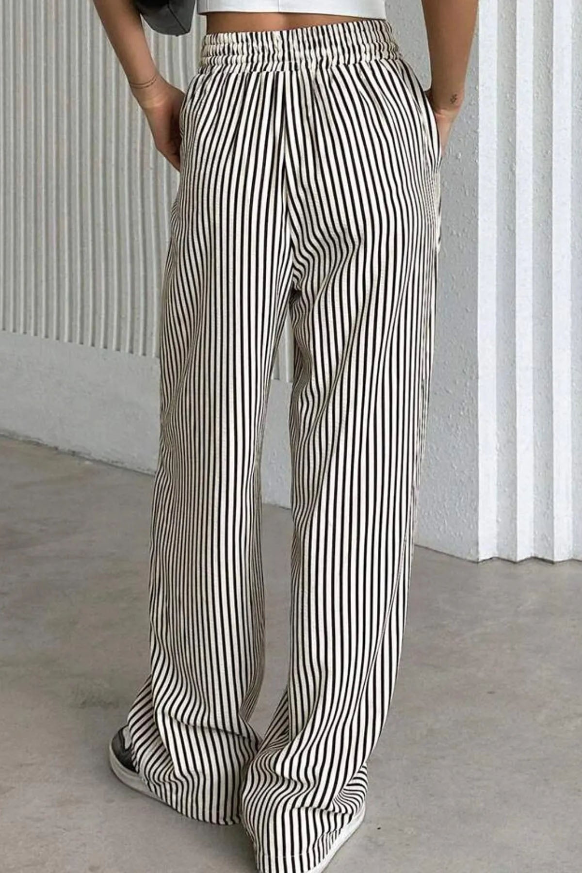 Designed with a chic high-waisted silhouette, these trousers effortlessly combine elegance with comfort. Crafted from lightweight fabric, these trousers are perfect for all-day wear.