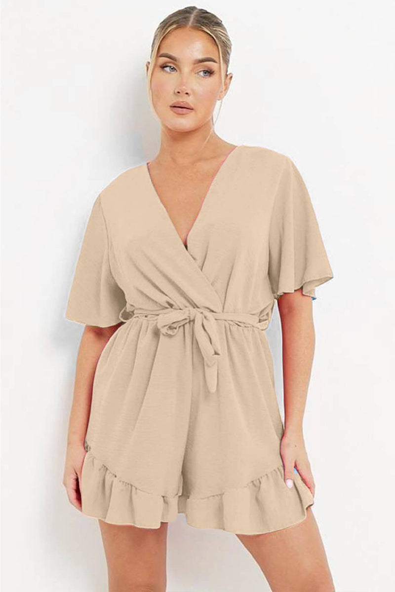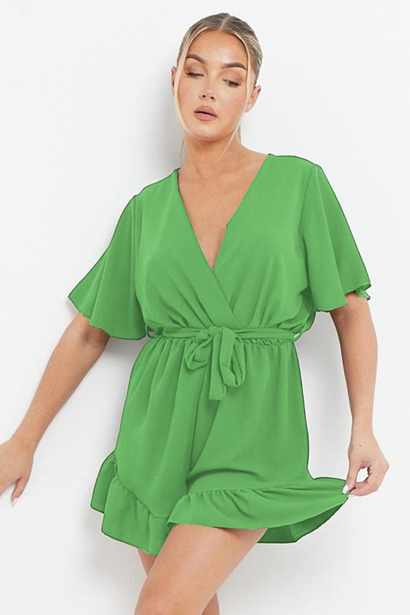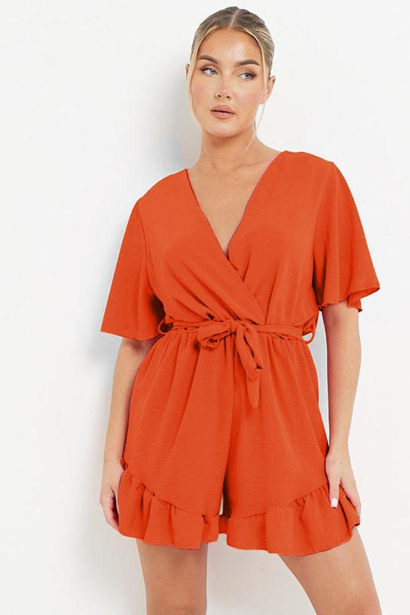 Crafted from a rich, solid color fabric, it boasts a low neckline that adds a flirtatious touch, complemented by a playful front tie-up design that accentuates your silhouette.