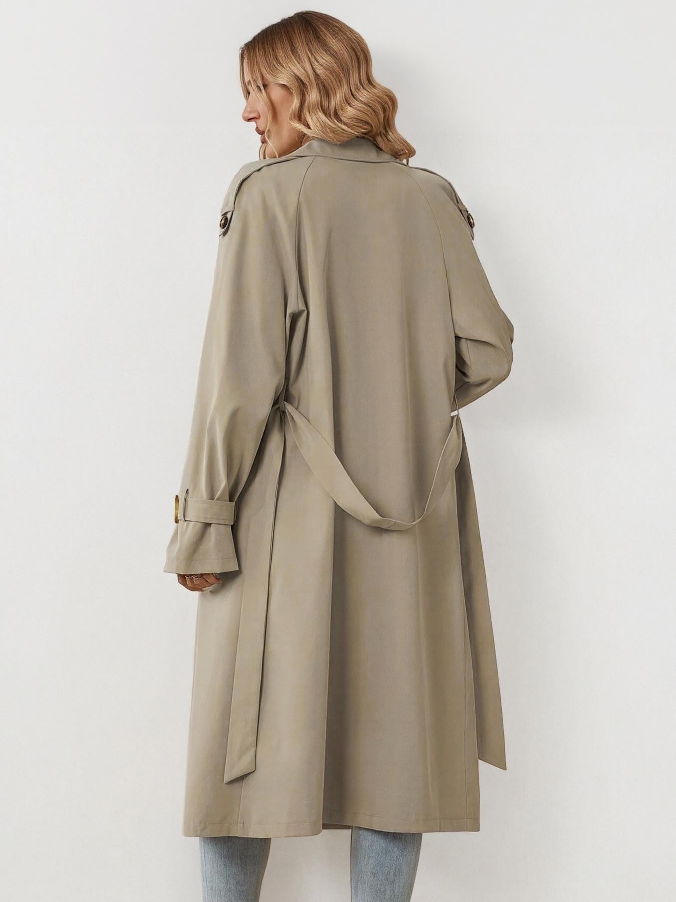 Classy Notch Lapel Double Breasted Belt Decor Trench Coat