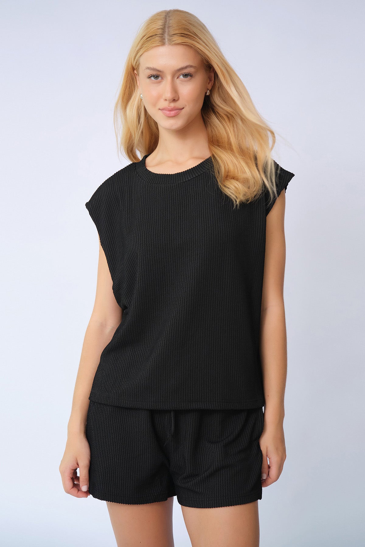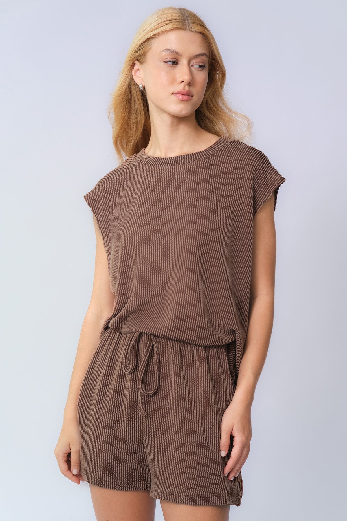 Elevate your everyday mood in this effortlessly chic two-piece set, where minimalist design meets all-day comfort for a look that lifts your spirits.