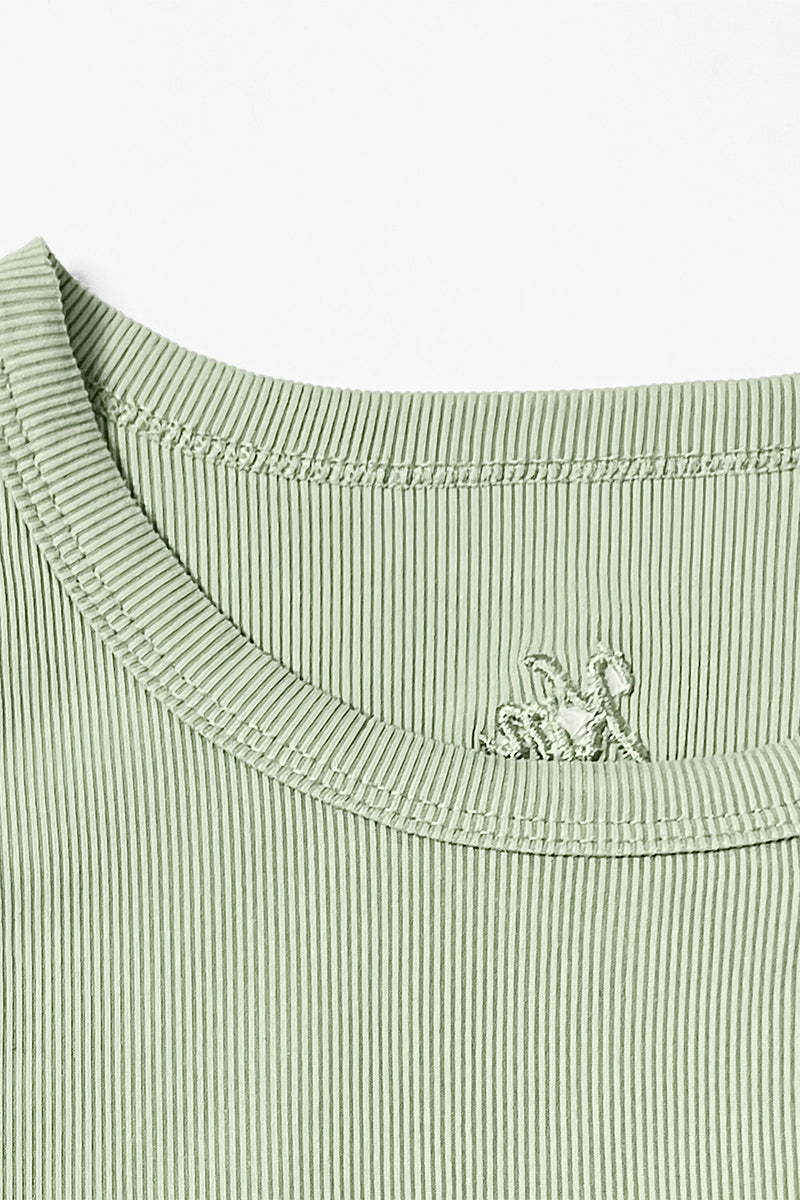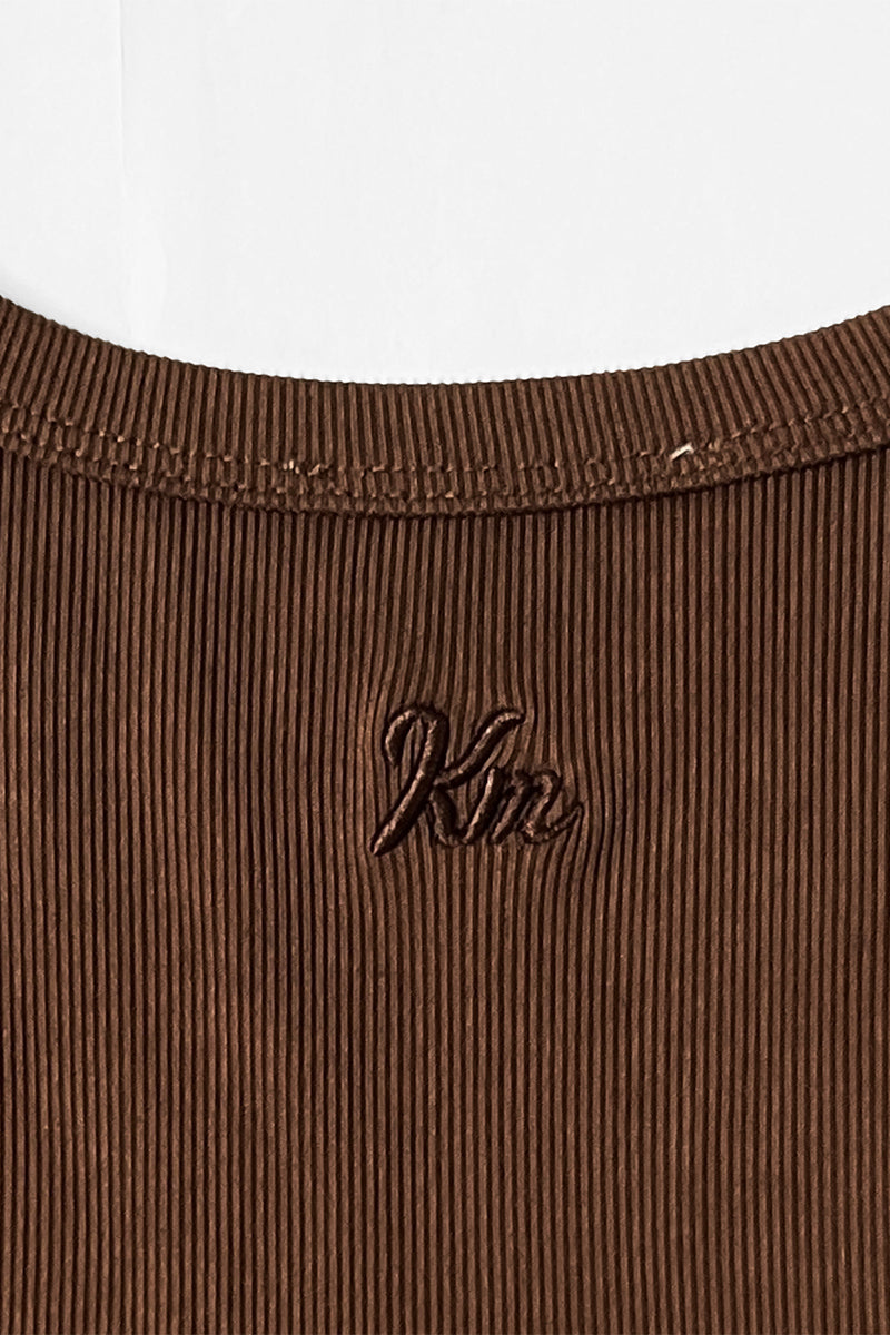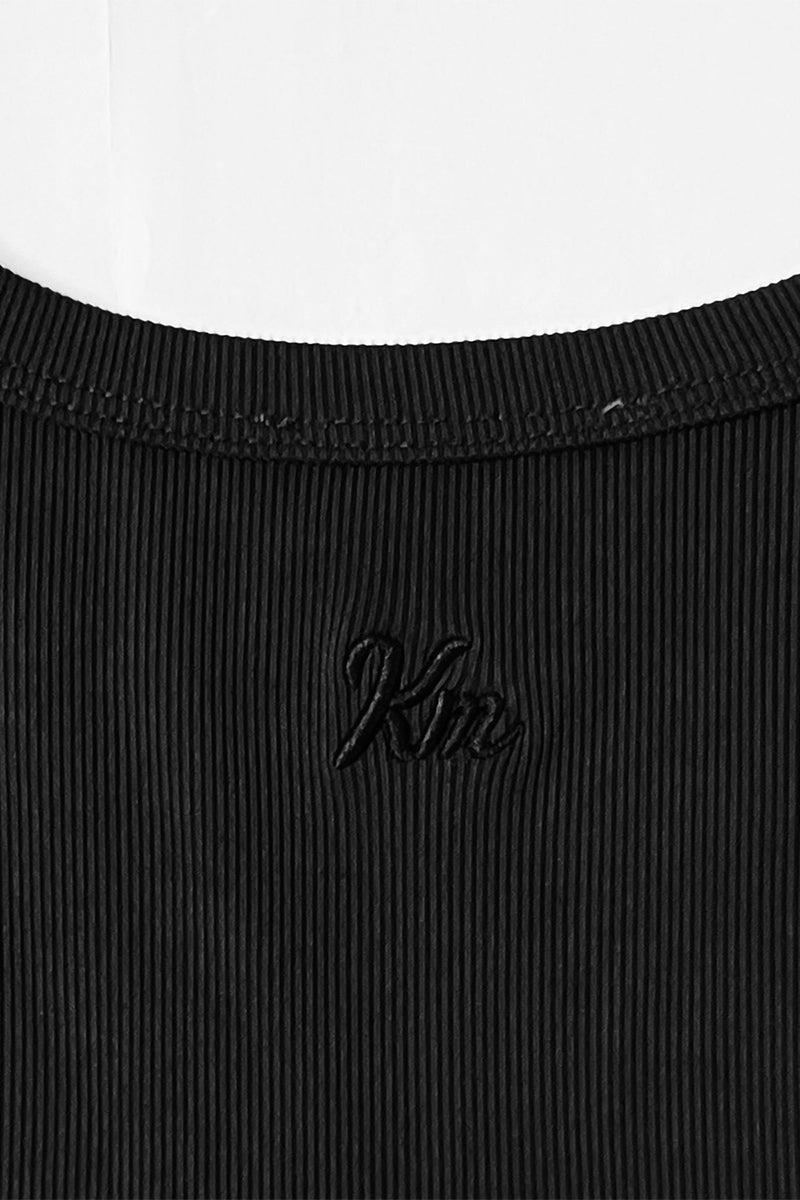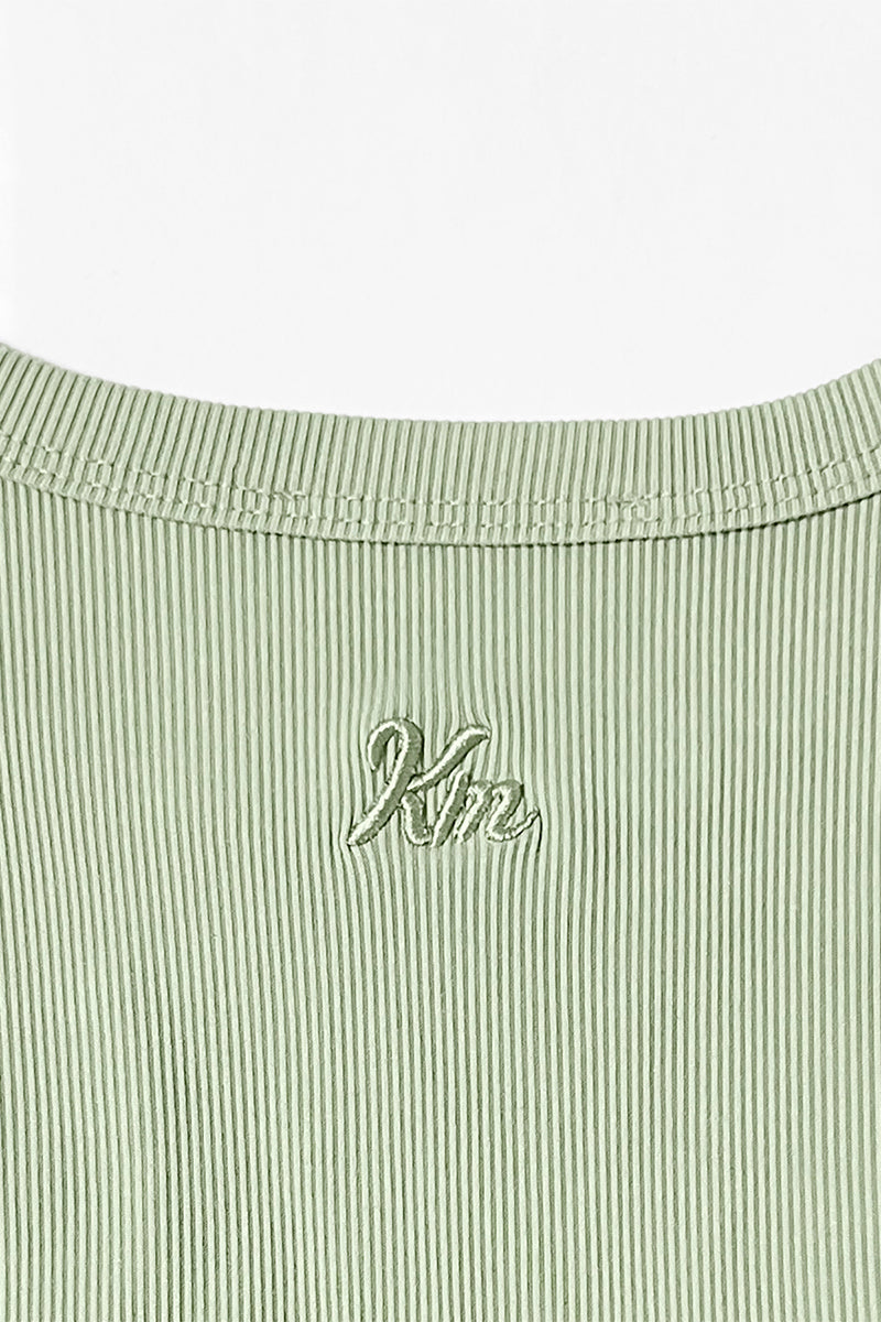 Ribbed cotton slim wide-leg set built-in padded bra KM embroidered waist stretchy breathable fabric transitions yoga street style sport leisure dual wear