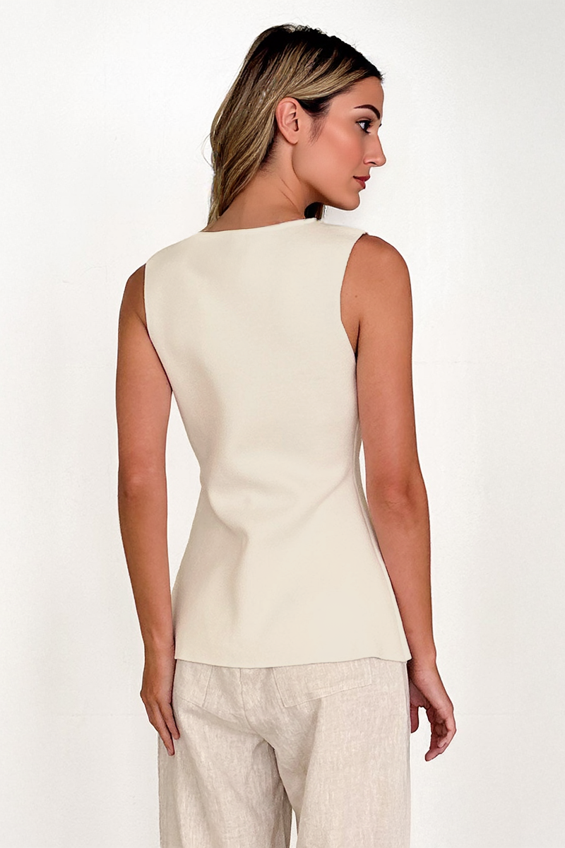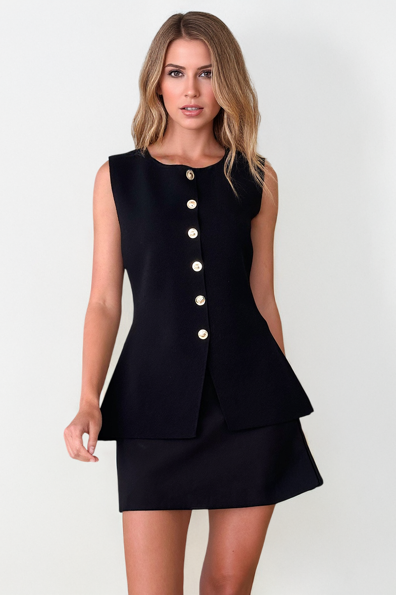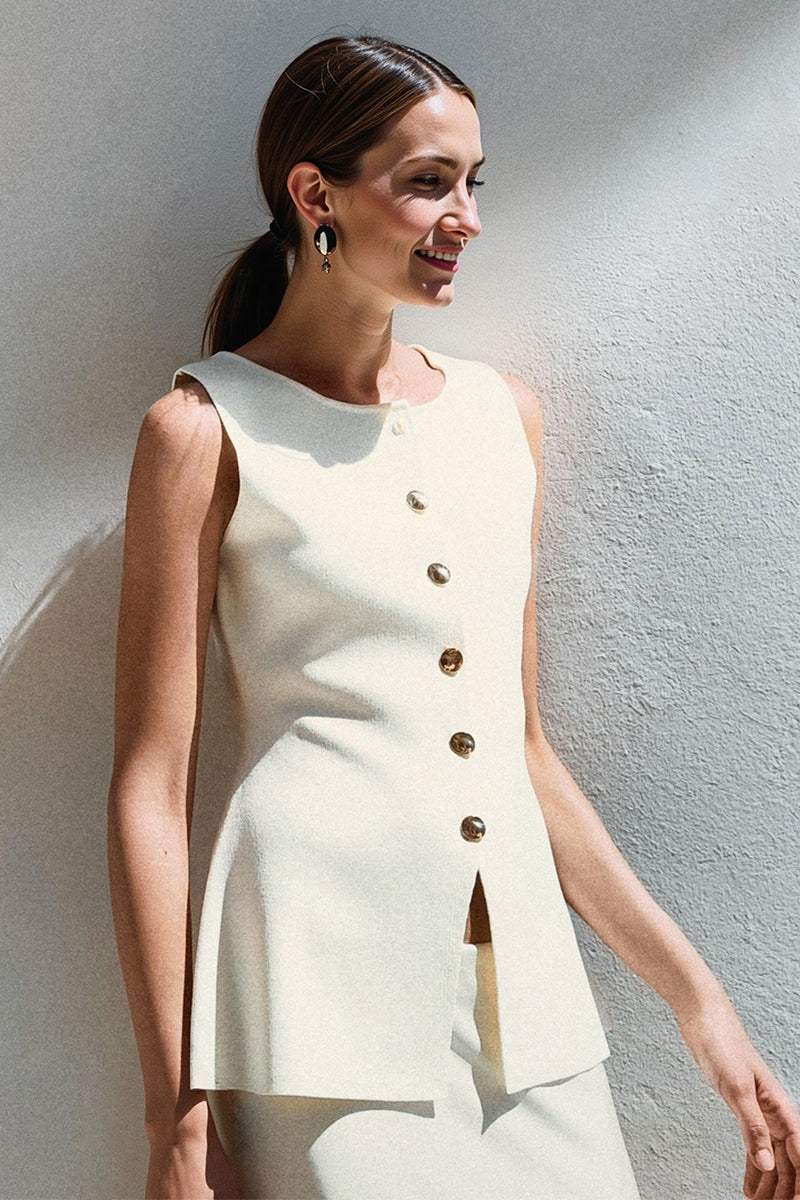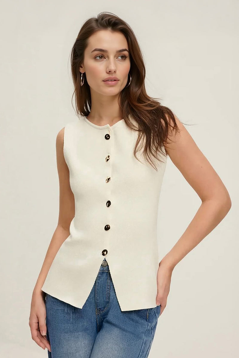 Achieve the trendy girl look with our tank top. This stylish piece features a solid-colored material, a front button-up, and a sleeveless design. It offers a slim fit and is made from soft fabric, ensuring comfort and flexibility.