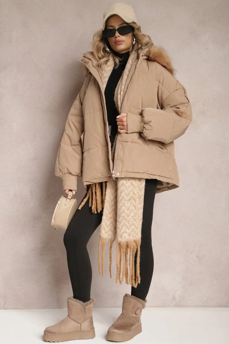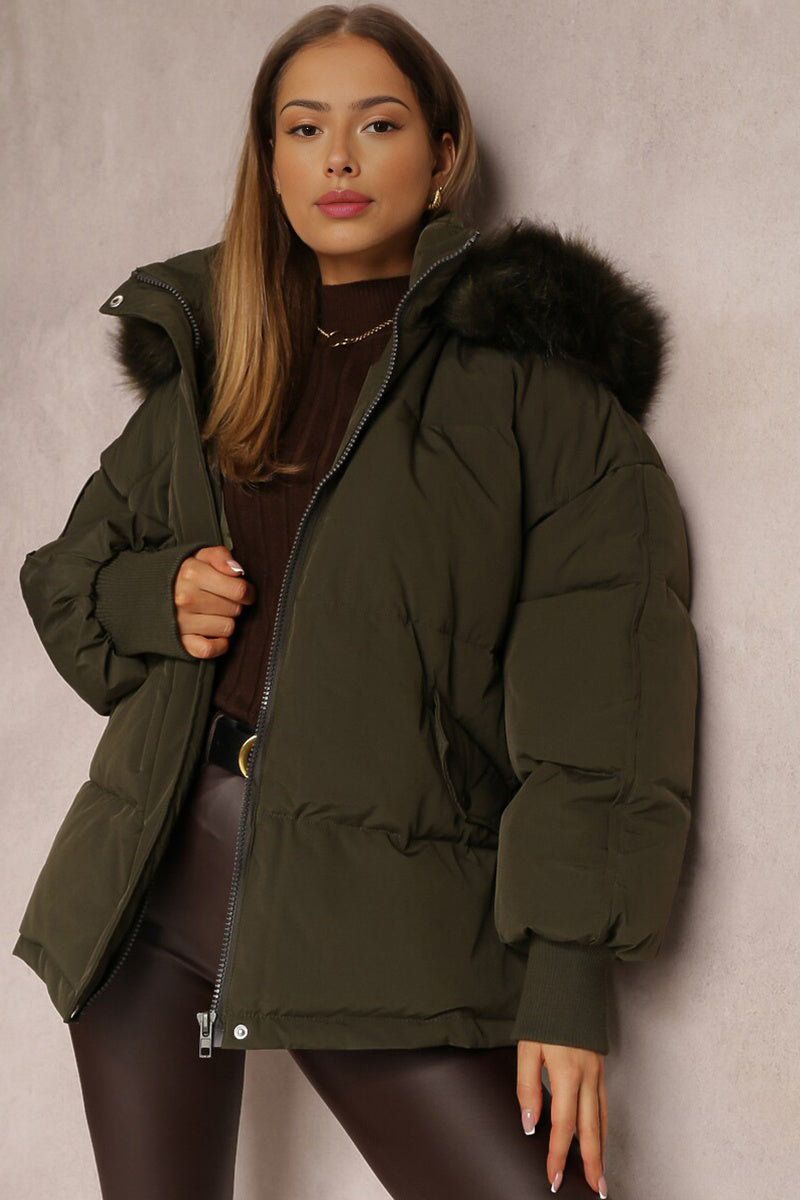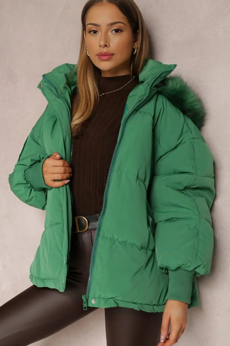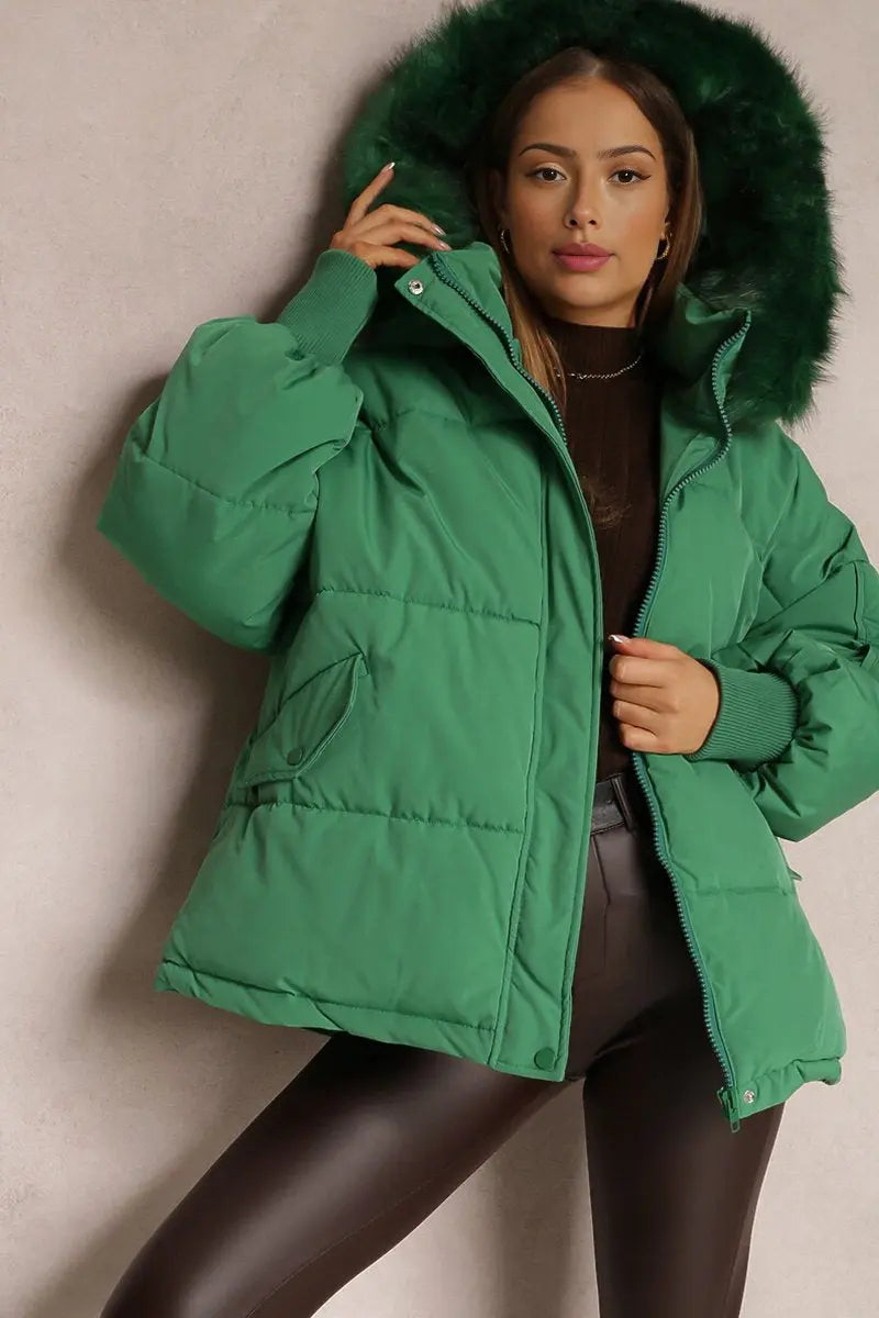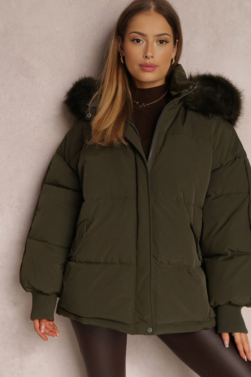 The plush hood envelops you in warmth, while the elasticated cuffs provide a snug fit against the chill. Crafted from cozy thermal fabric, this coat promises to keep you toasty without sacrificing an ounce of style.