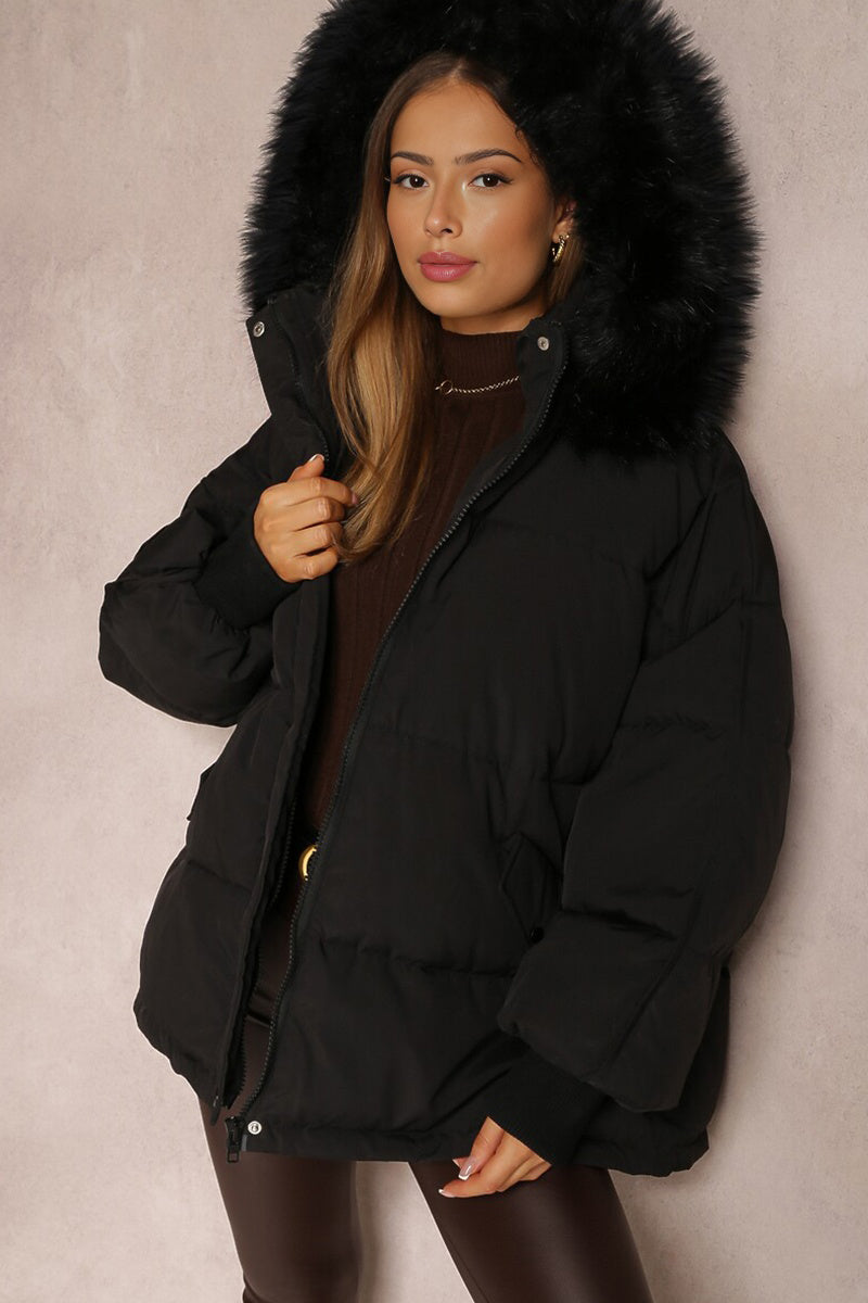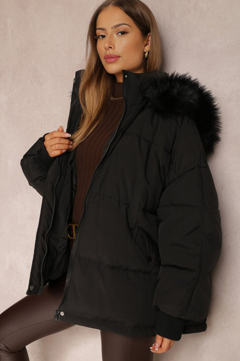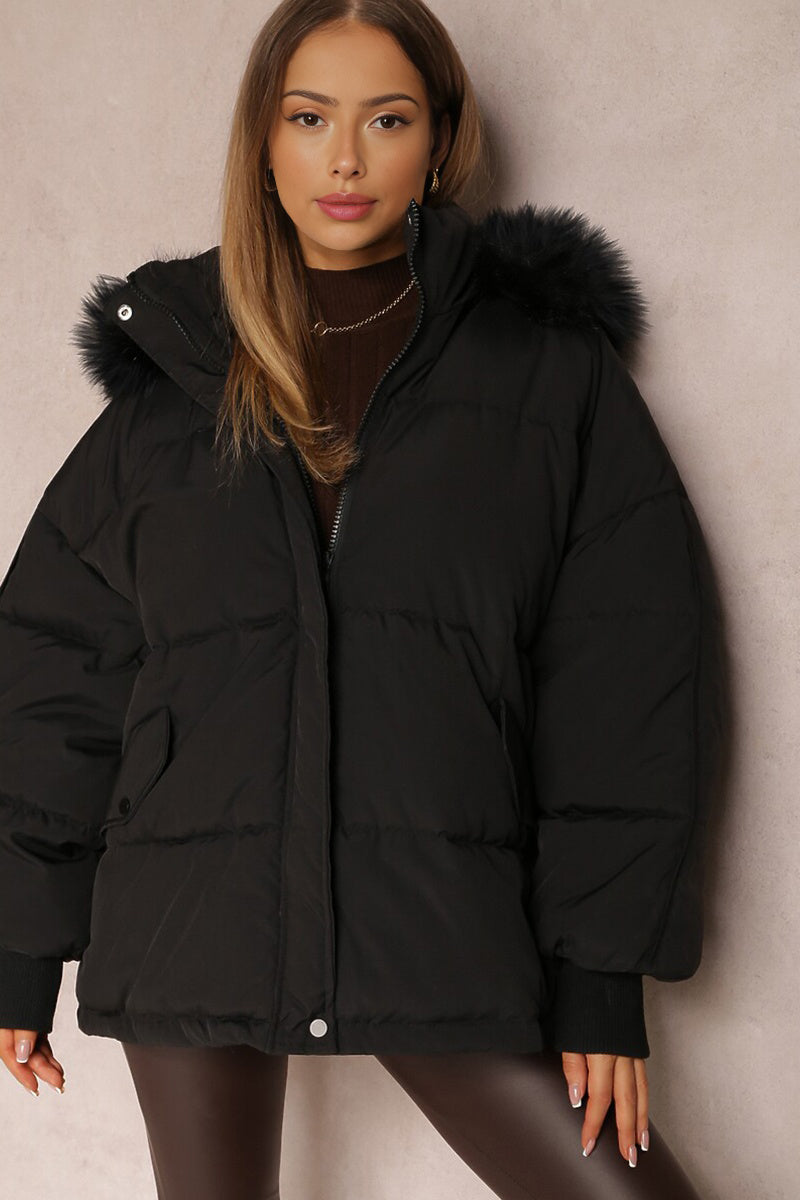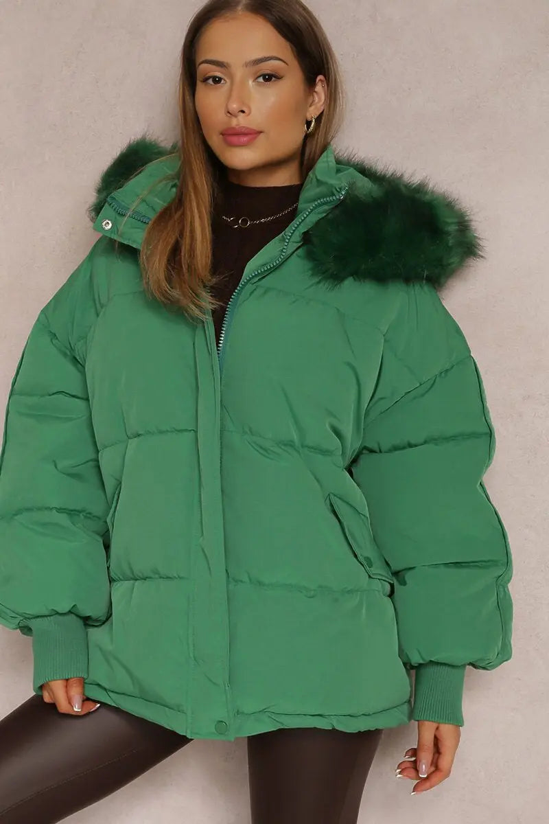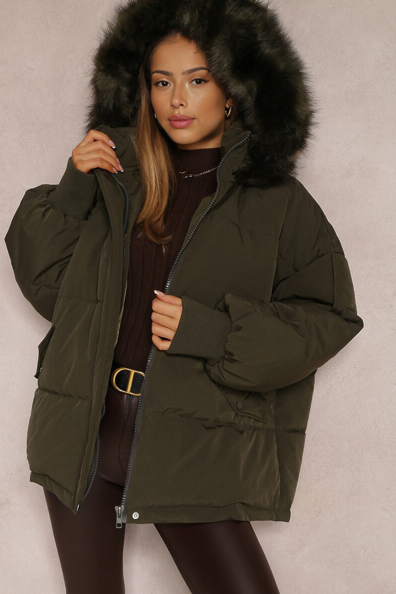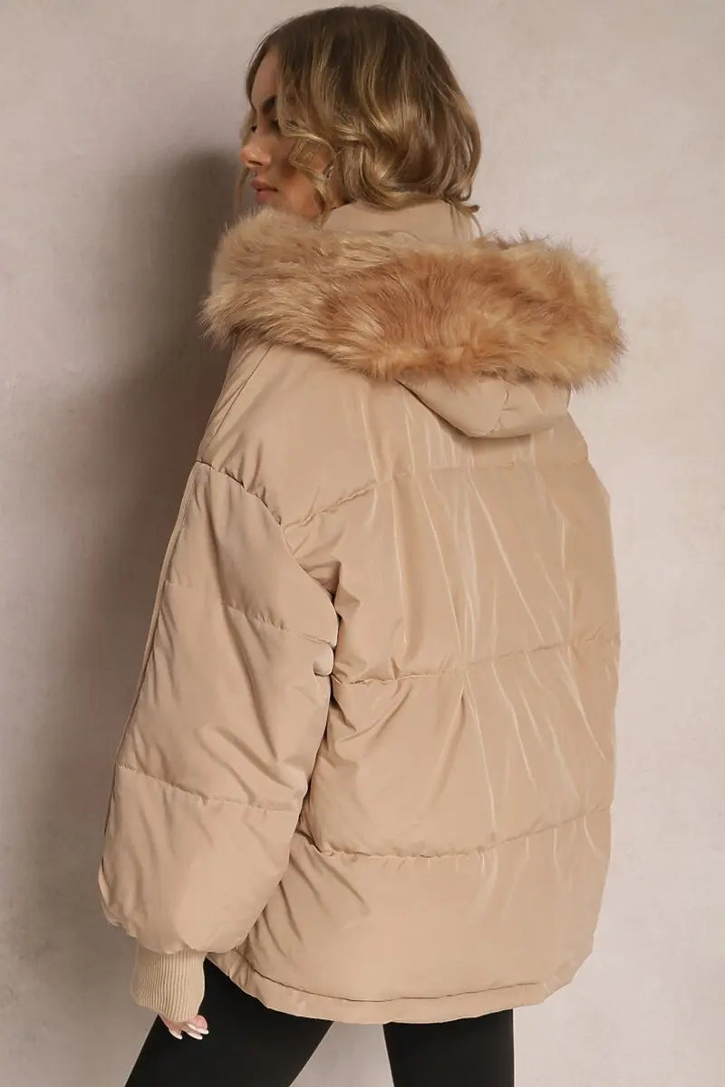 The plush hood envelops you in warmth, while the elasticated cuffs provide a snug fit against the chill. Crafted from cozy thermal fabric, this coat promises to keep you toasty without sacrificing an ounce of style.