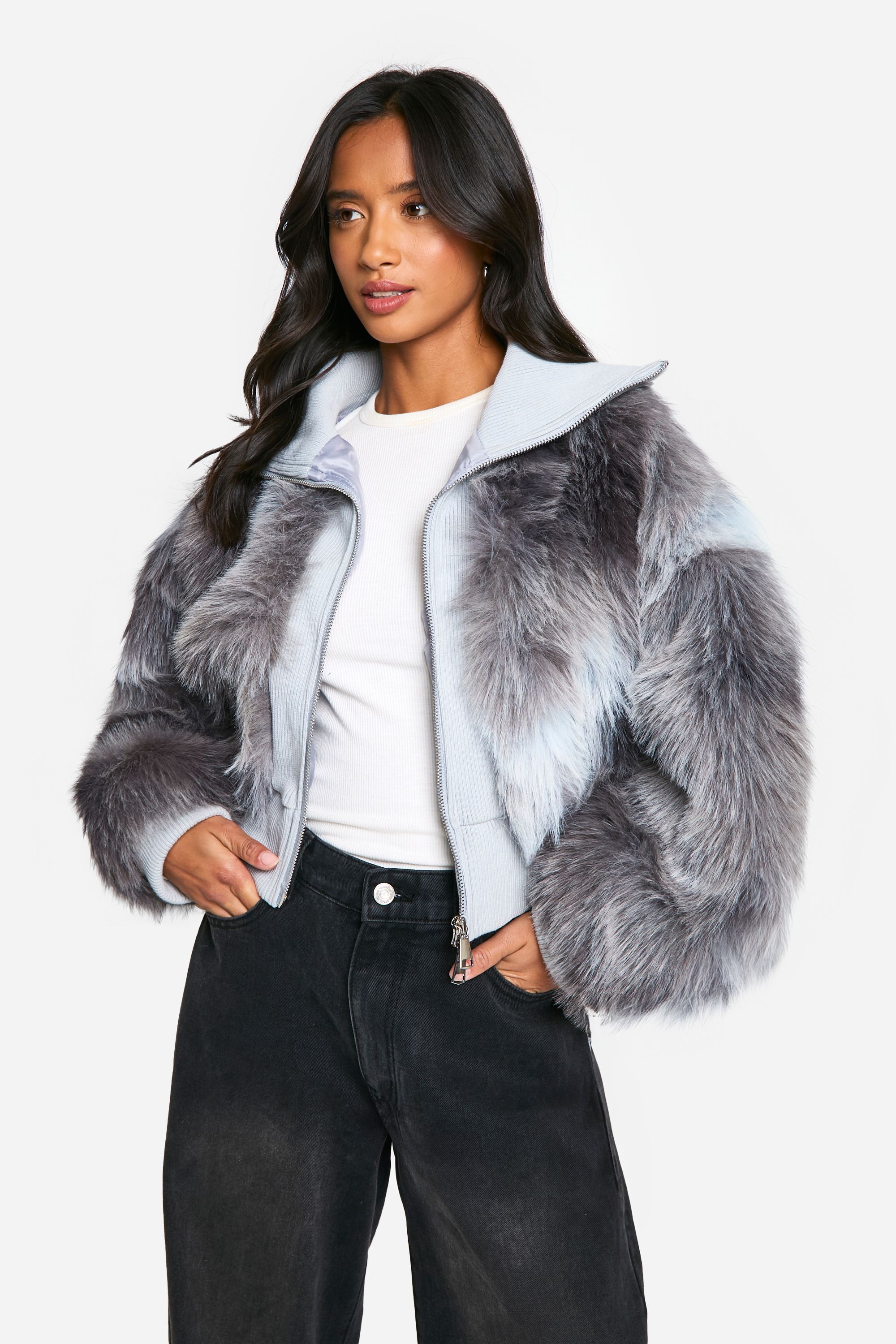 - Make a bold statement with this eye-catching cropped faux fur jacket. The contrasting ribbed detailing adds a unique touch to the plush texture, creating a striking visual appeal. Perfect for the fashion-forward woman who loves to stand out, this jacket is ideal for casual outings and social gatherings. Style it with high-waisted jeans and a simple white tee for a chic daytime look, or throw it over a little black dress for a night out with friends. The versatile design allows for endless styling possibilities, making it a must-have addition to your wardrobe. Whether you're heading to a family lunch or a casual coffee date, this jacket will keep you warm and stylish. Its petite fit ensures a flattering silhouette for smaller frames, while the full-length sleeves provide comfort during cooler weather. Embrace your inner trendsetter and let this faux fur jacket be the star of your outfit.