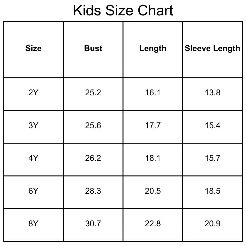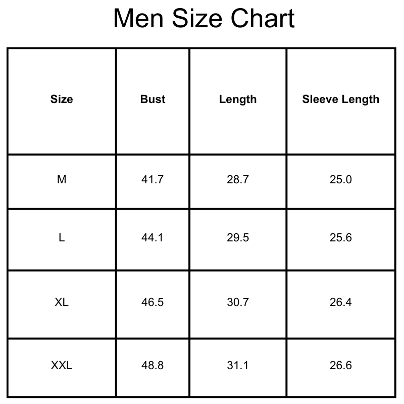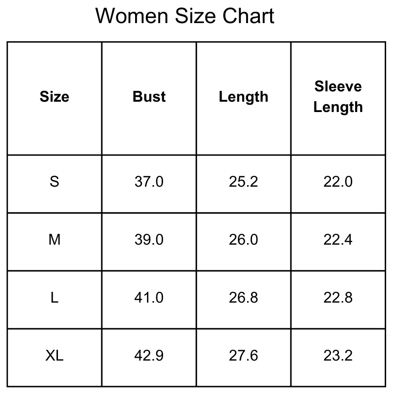 Size Chart(inches):