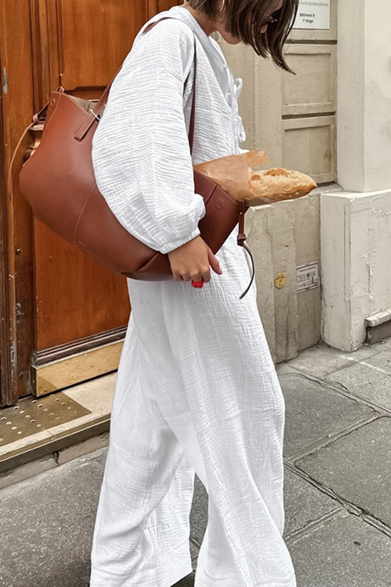 White Cotton Tie-up Shirt Long Pants Set